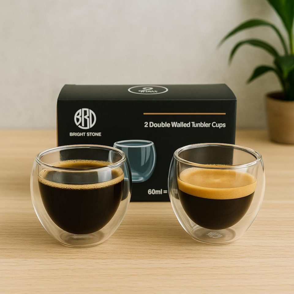 ☕ Compact & Stylish – Set of 2 sleek double wall espresso cups (60ml) perfect for coffee, tea, or Turkish brew, offering insulation & elegance in one.