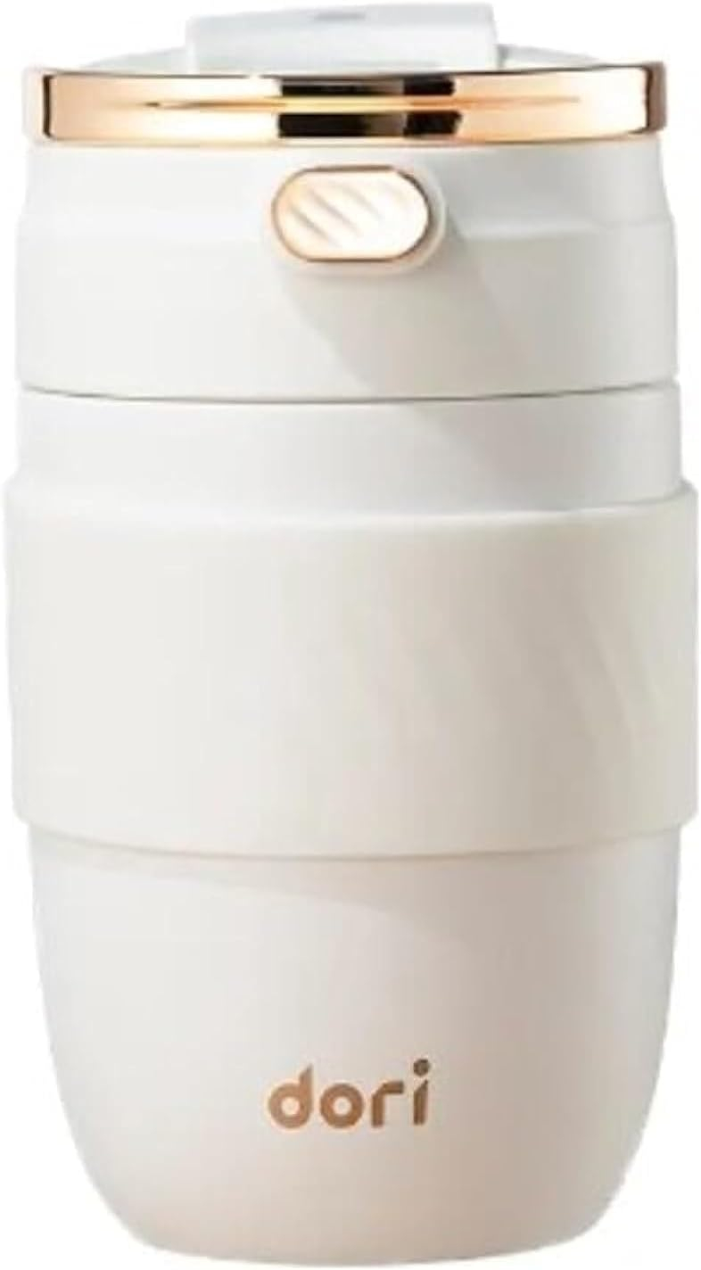 vacuum insulated coffee mug double wall w/Portable Lid w/straw,BPA Free,Insulated for Hot&Cold Drinks 18/8 Stainless Steel Cup 380ML Rapid Lock/Smooth 8 Hours Hot /20 Hours Cold Colours: white