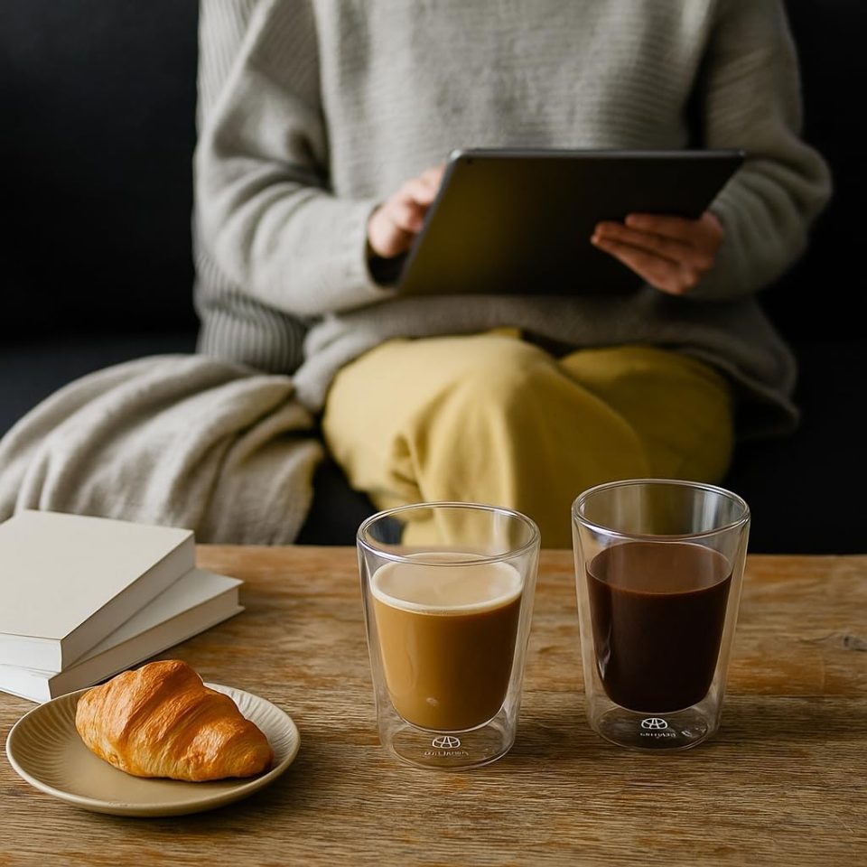 ☕ 2-Piece Glass Set – Each double wall cup holds 350ml, perfect for lattes, teas, cold coffee, or juice. Ideal for everyday use at home, in cafés, or the office.