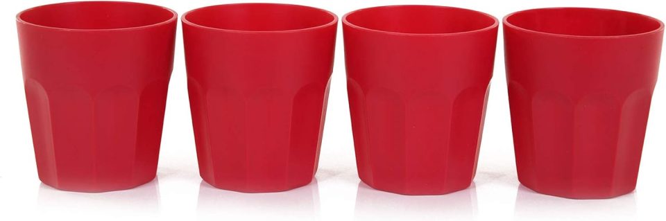 Mintra Home Unbreakable Cups and Tumblers 4pk (Bold Collection) (Dark Red, Cup 230ml (7oz) – 3.125inH x 2.875inW