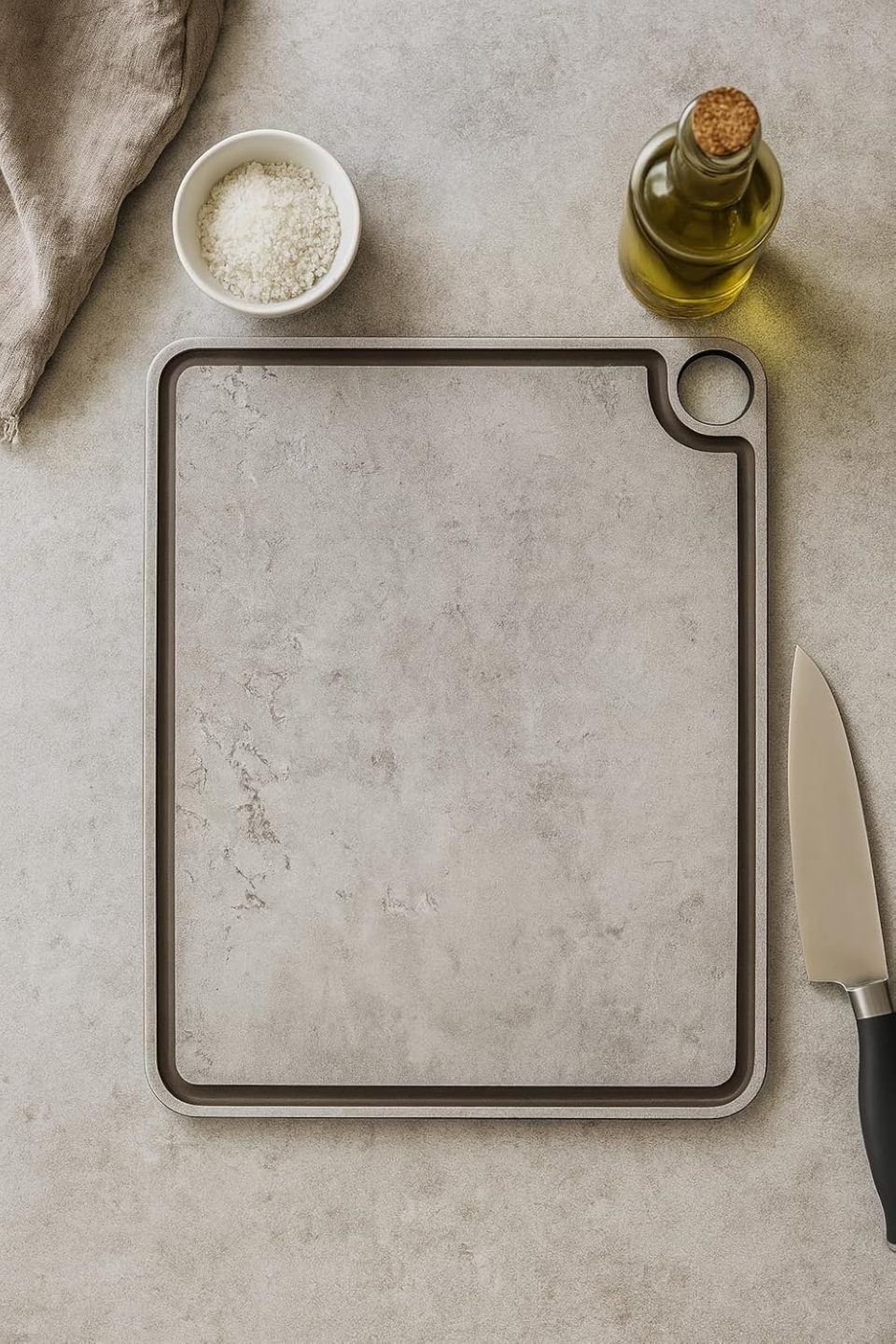 🎁 Modern Design – Ideal for Gifting and Everyday Use With its sleek grey color and minimalist concrete-look finish, this board fits seamlessly into any modern kitchen. Whether you’re upgrading your tools or gifting someone special, the B&S cutting board is a stylish and practical gift for housewarmings, birthdays, holidays, or weddings.