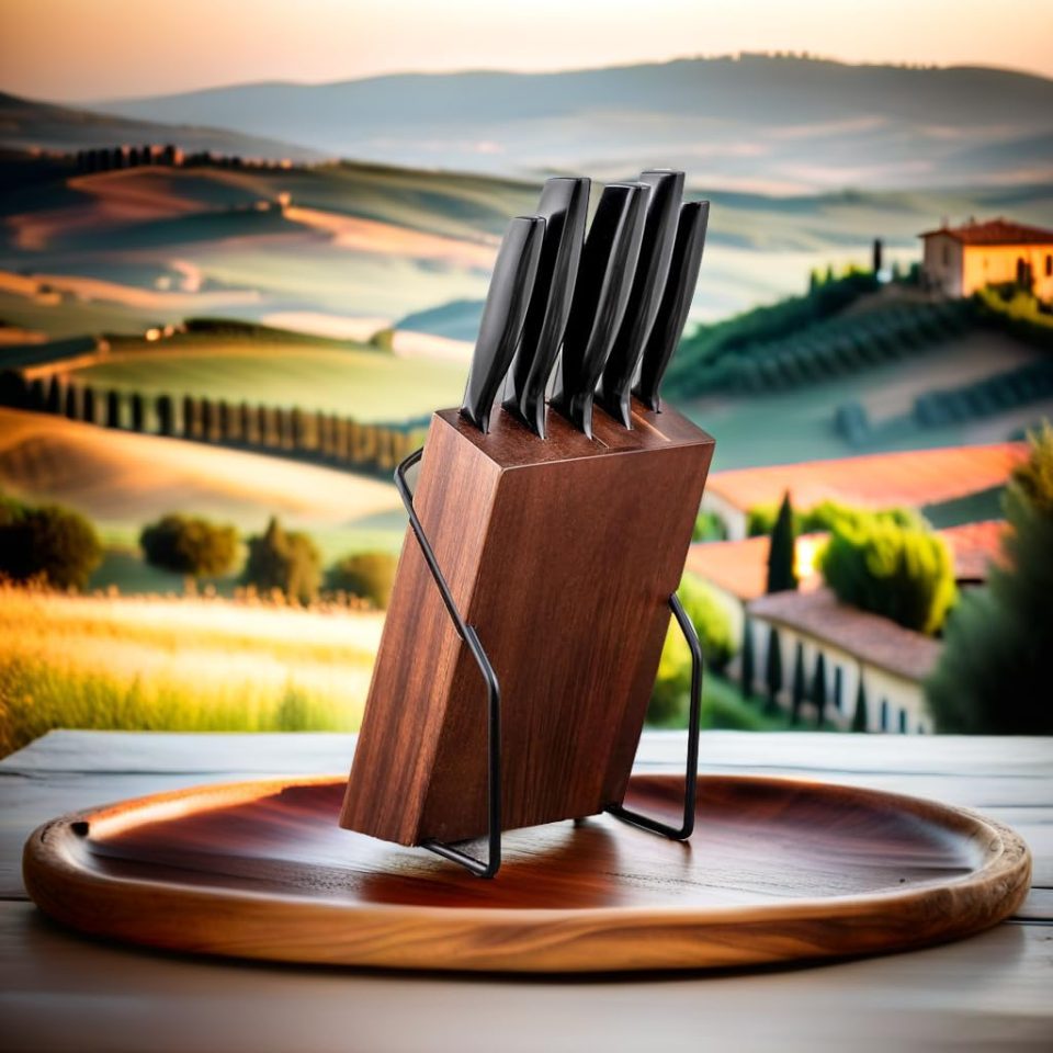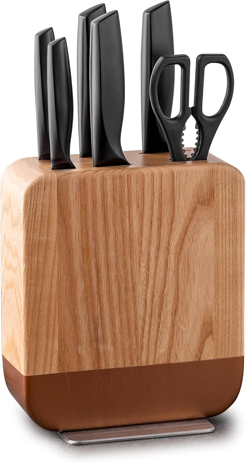 🧼 Easy to Clean, Rust-Resistant & Built to Last The stainless steel blades are resistant to corrosion, staining, and odors, making cleanup quick and hassle-free. A simple hand wash and dry will preserve their sharpness and keep your tools looking like new, while the block can be wiped clean with a damp cloth.