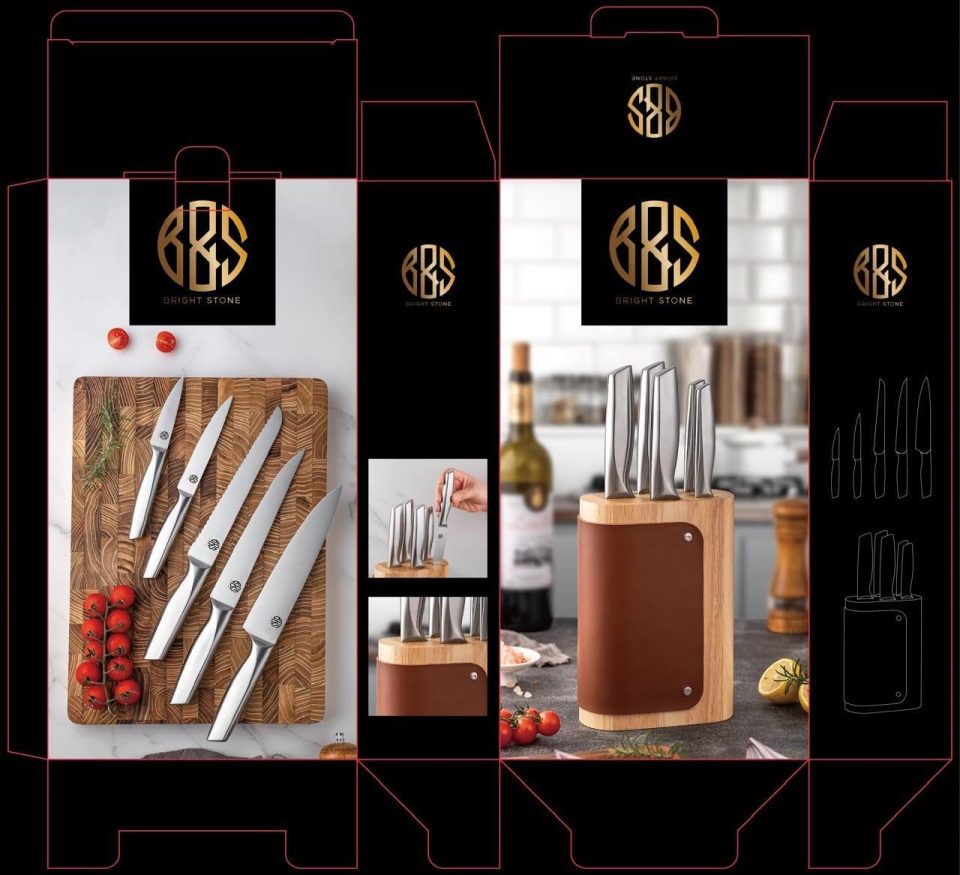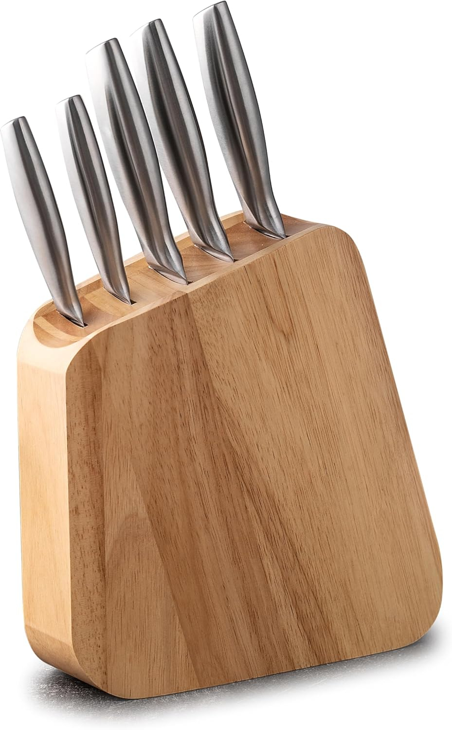 B&S Modern Knife Block Set with 5 Stainless Steel Knives, Wooden Storage Block,pass the European LFGB standard,ZT0013