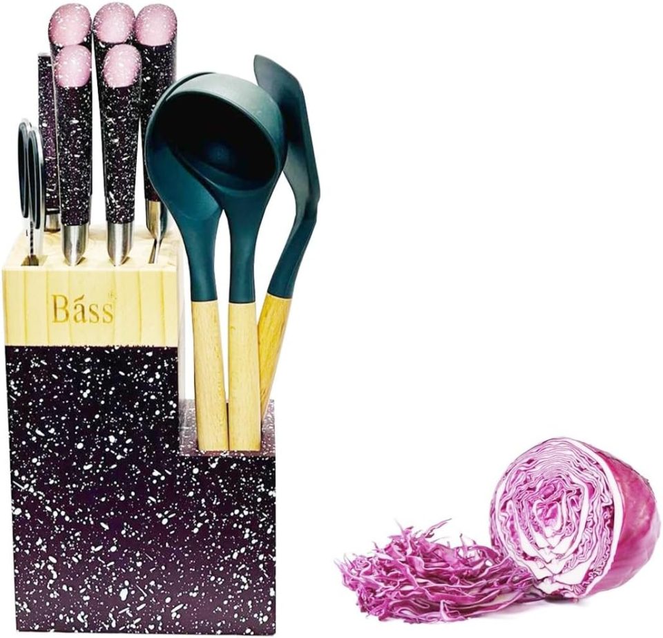 knife Set 12Pcs With Stand Purple Bass/bs4