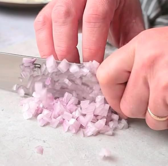 - ✋ Ergonomic Design – Balanced for Performance Designed with comfort in mind, this knife offers exceptional balance between blade and handle. The full-tang construction ensures structural integrity, while the curved handle supports your grip—reducing wrist strain and maximizing control with every chop, slice, or mince.