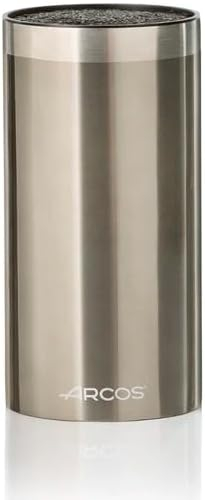B&S 794900 Universal Round Knife Block – Chrome-Plated Stainless Steel Cylinder with Flexible Insert for All Knife Types – Compact Countertop Holder – Sleek & Durable Design