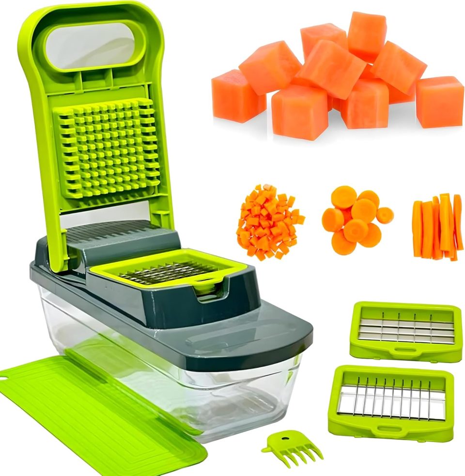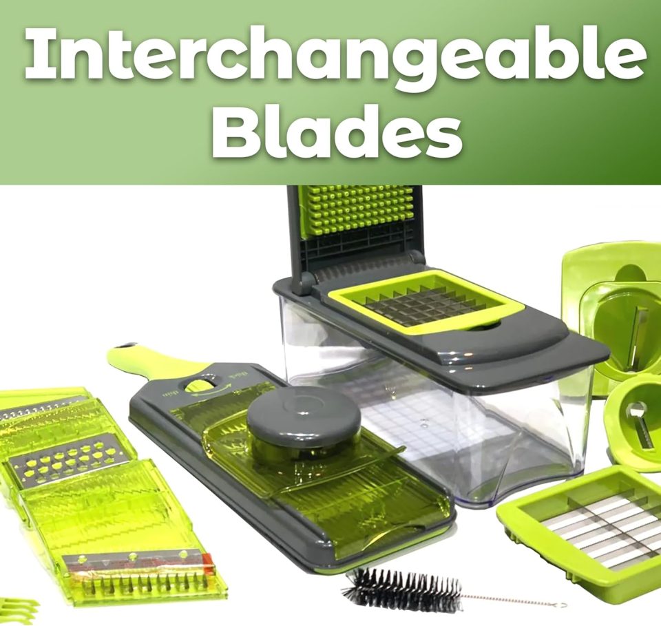 COMPACT & PRACTICAL: This lightweight Veggie Chopper comes with a built-in container to catch your slices, reducing mess. Its compact design makes it easy to store in tight kitchen spaces. The included cleaning brush ensures hassle-free cleanup for added convenience.