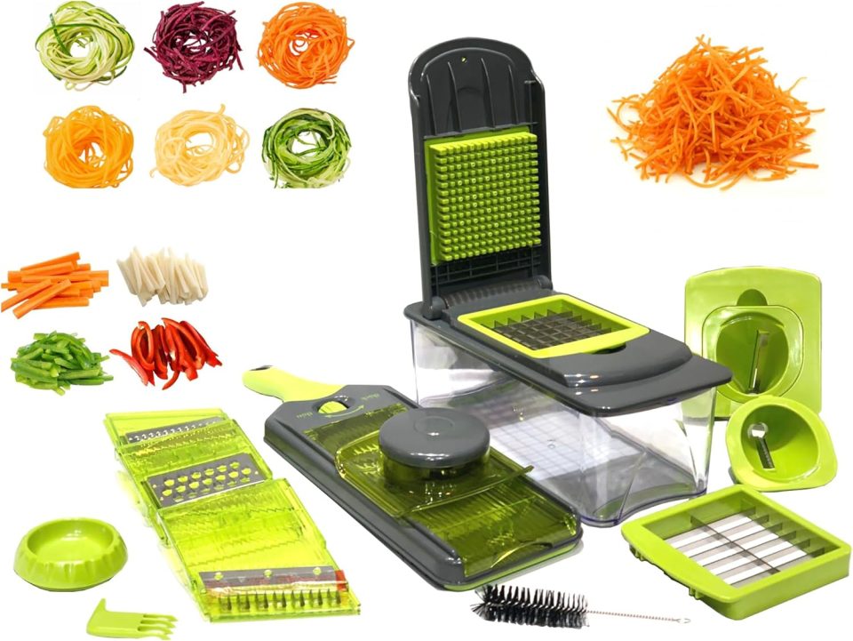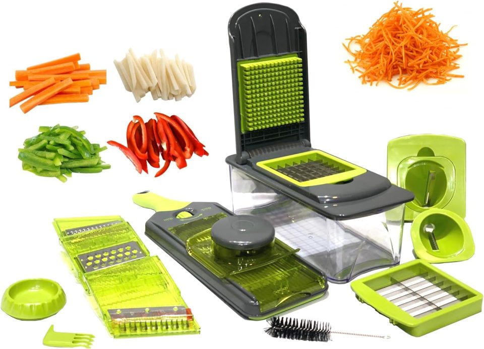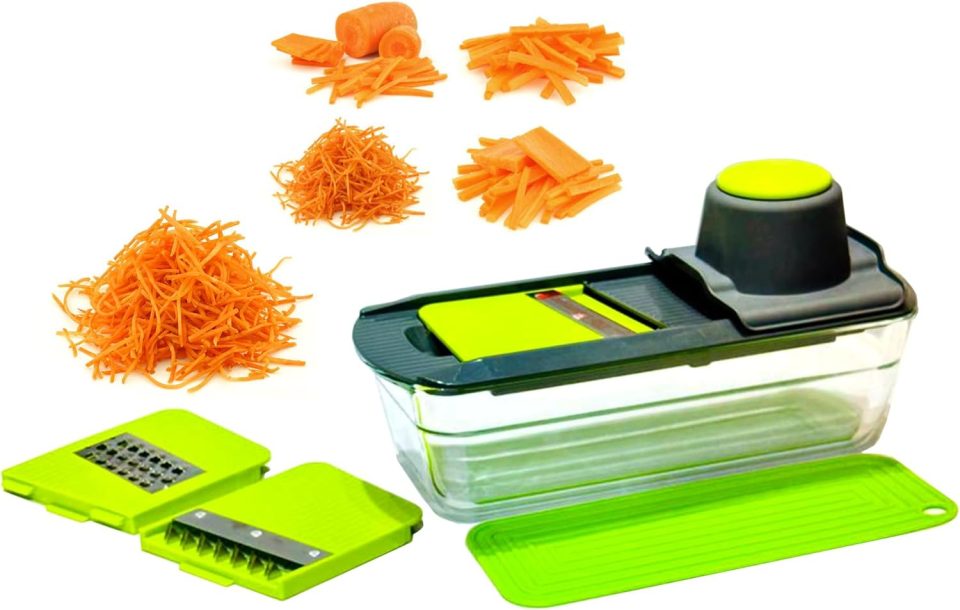 Super Kitchen Set Made of stainless steel and plastic Excellent multi-purpose robot to shred fruits and vegetables for salads. chopping onions