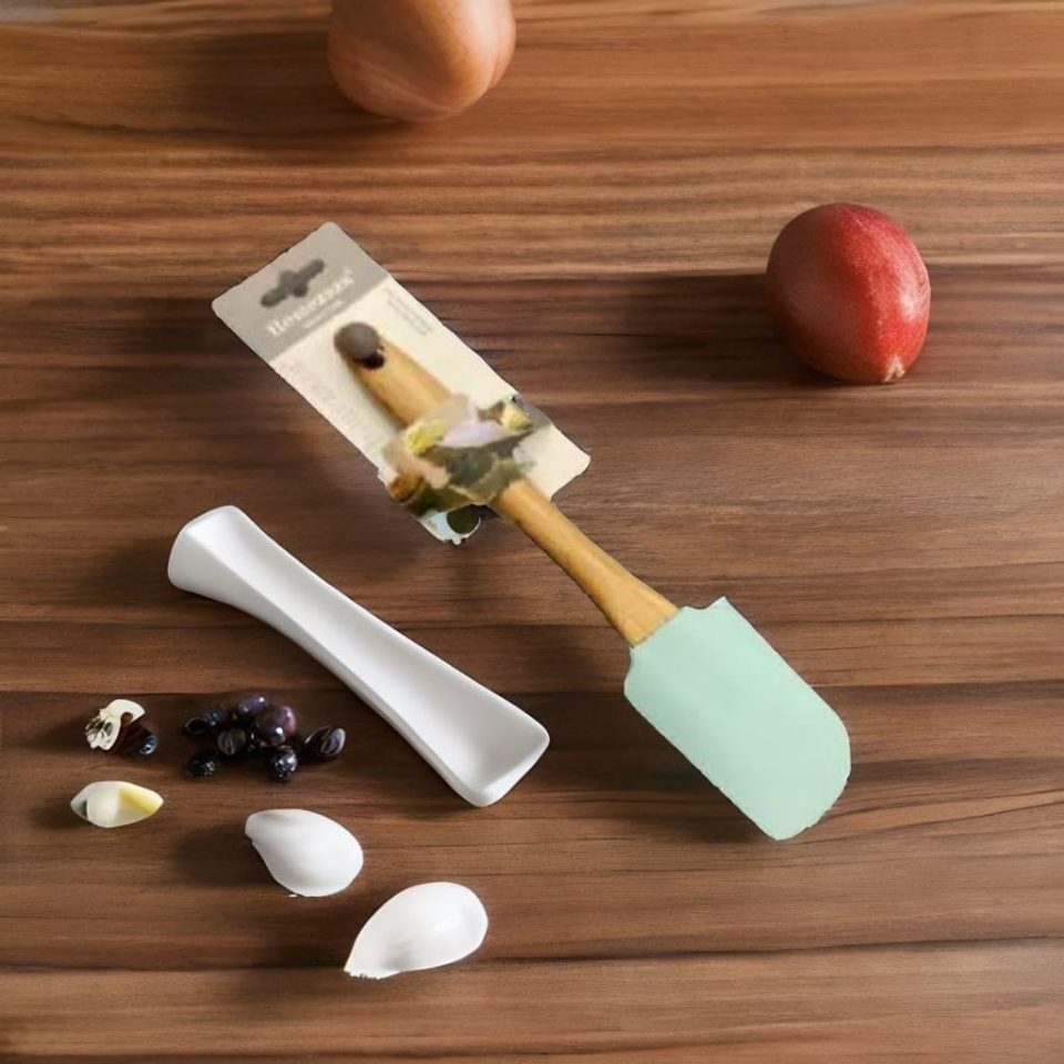 Wide Silicone Head Food-grade and BPA-free Heat-resistant up to 450°F (232°C) Flexible design for easy flipping, stirring, and scraping Safe for use with non-stick cookware Sturdy Wooden Handle Crafted from natural wood for durability Ergonomic grip for comfortable handling Adds a warm, rustic look to your kitchen tools Seamless & Hygienic Design One-piece silicone head prevents food buildup Easy to clean and resists stains and odors Versatile Kitchen Essential Perfect for baking, cooking, sautéing, and serving Ideal for home cooks and professionals alike