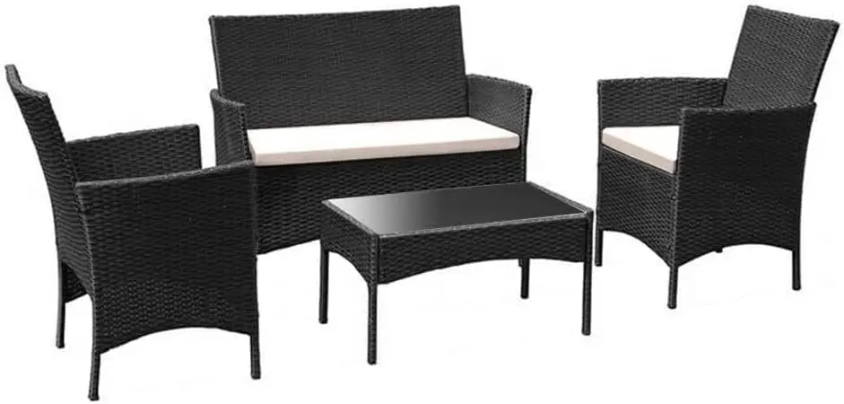 🛡️ Durable Black Metal Frame for Long-Lasting Outdoor Use: Crafted with a heavy-duty, powder-coated steel frame, this outdoor patio furniture set is rust-resistant, weather-resistant, and built to endure the intense UAE sun and humidity, providing lasting beauty in any season.