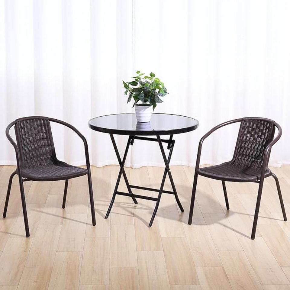 🪟 Stylish Tempered Glass-Top Table – Easy to Clean & Elegant: The round tempered glass table is not only sleek and modern but also strong, durable, and easy to clean — perfect for serving coffee ☕, tea, snacks 🥐, cocktails 🍹, or decorating with flowers 🌸 to create a cozy outdoor café vibe.