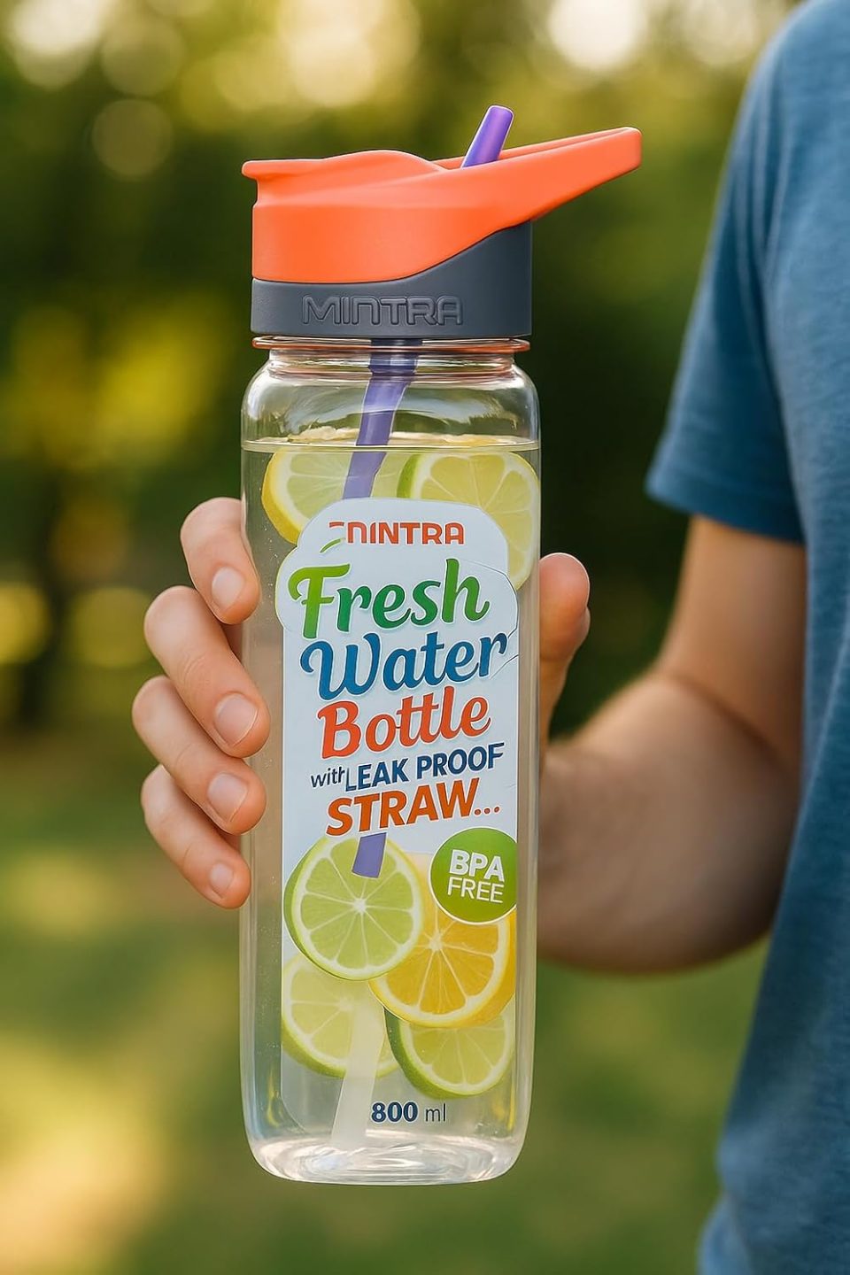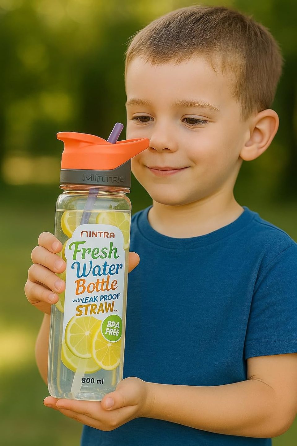 B&S 800ml Reusable Water Bottle with Straw | BPA-Free Leak-Proof Sports Bottle | Portable Drinking Bottle for Gym, School, Travel & Office | Lightweight & Durable Hydration Companion