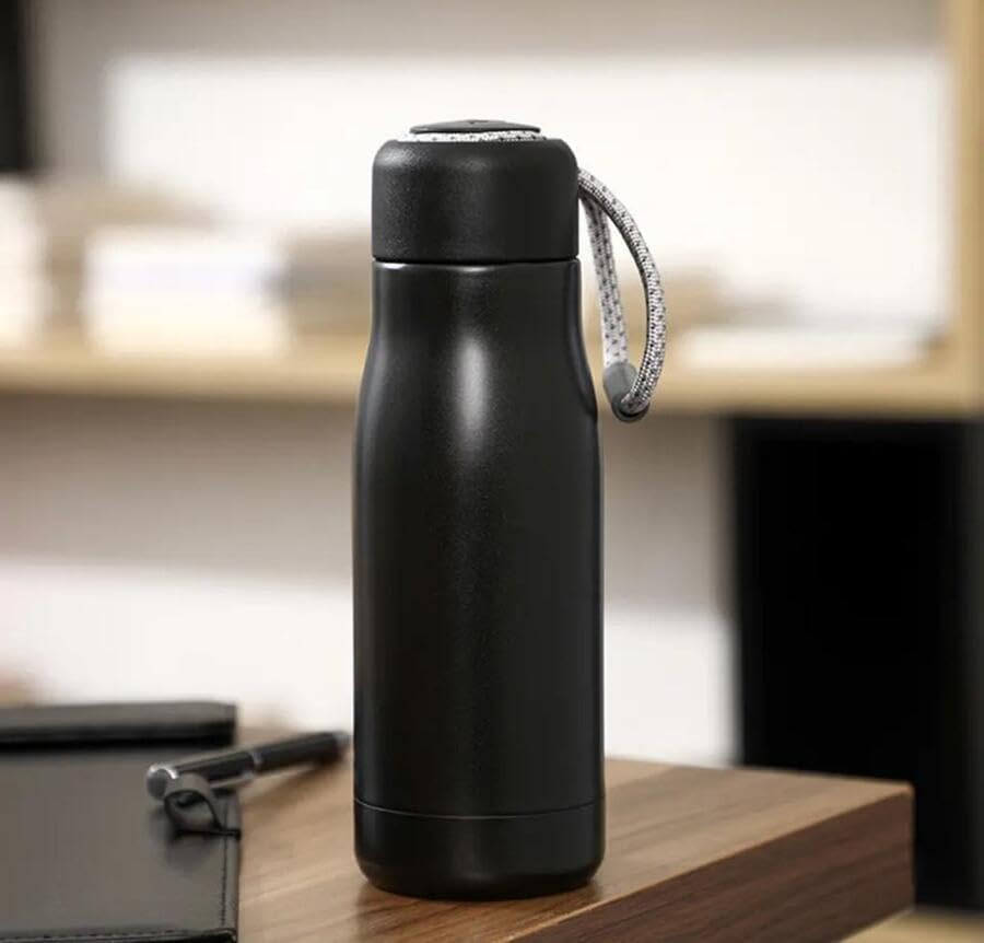 Water Bottles with Portable Lid, BPA Free, Hydro Insulated Thermal Flask for Hot and Cold Drinks 18/8 Stainless Steel Cup 350ML 8 Hours Hot / 20 Hours Cold Colours: Black