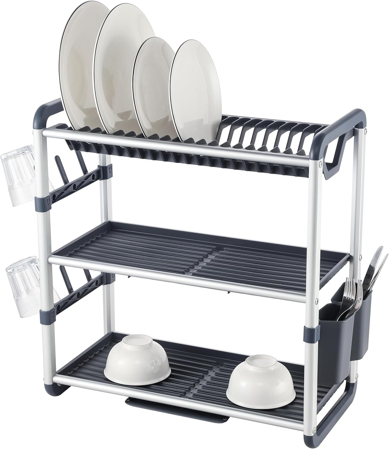 PA-2302A3 Aluminum Dish Rack Aluminum+PP+ABS Removable draining tray allows easy removal of excess water and cleaning High Quality Aluminum, No Rust Flat place accommodate glasses Removable Utensil holder L609*W267*H572