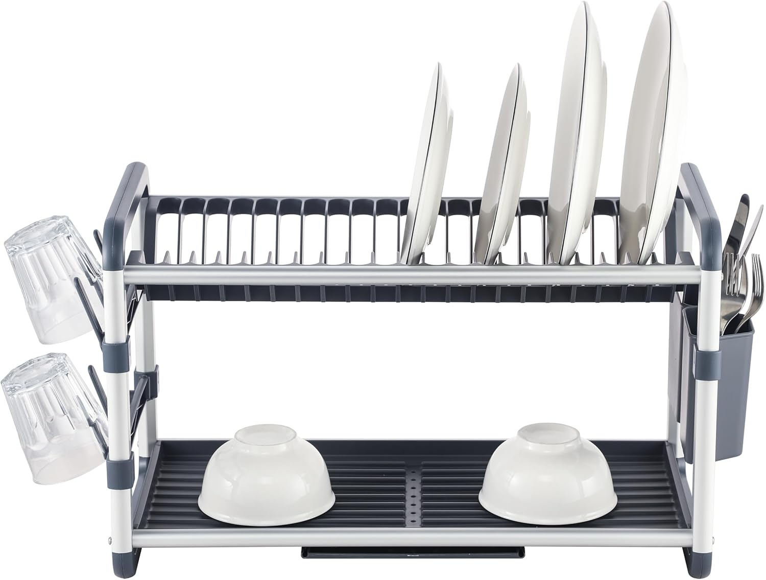 PA-2302A2 Aluminum Dish Rack Removable draining tray allows easy removal of excess water and cleaning High Quality Aluminum, No Rust Flat place accommodate glasses Removable Utensil holder Aluminum+PP+ABS L609*W267*H342
