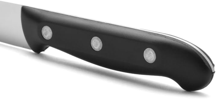 • 🖐️ Ergonomic Comfort Grip Reduces Fatigue Designed for both home cooks and professionals, the contoured handle fits comfortably in your hand. It reduces hand fatigue and wrist strain, allowing for extended use without discomfort — ideal for long meal prep sessions or professional kitchen environments.