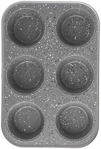 This muffin pan features a sleek, stylish grey marble finish, with eye-catching white and black dots scattered across the surface. The elegant design makes it a standout piece in your kitchen. Its modern look ensures that it complements a wide range of kitchen decor, while still being functional and practical for all your baking needs. 🍩
