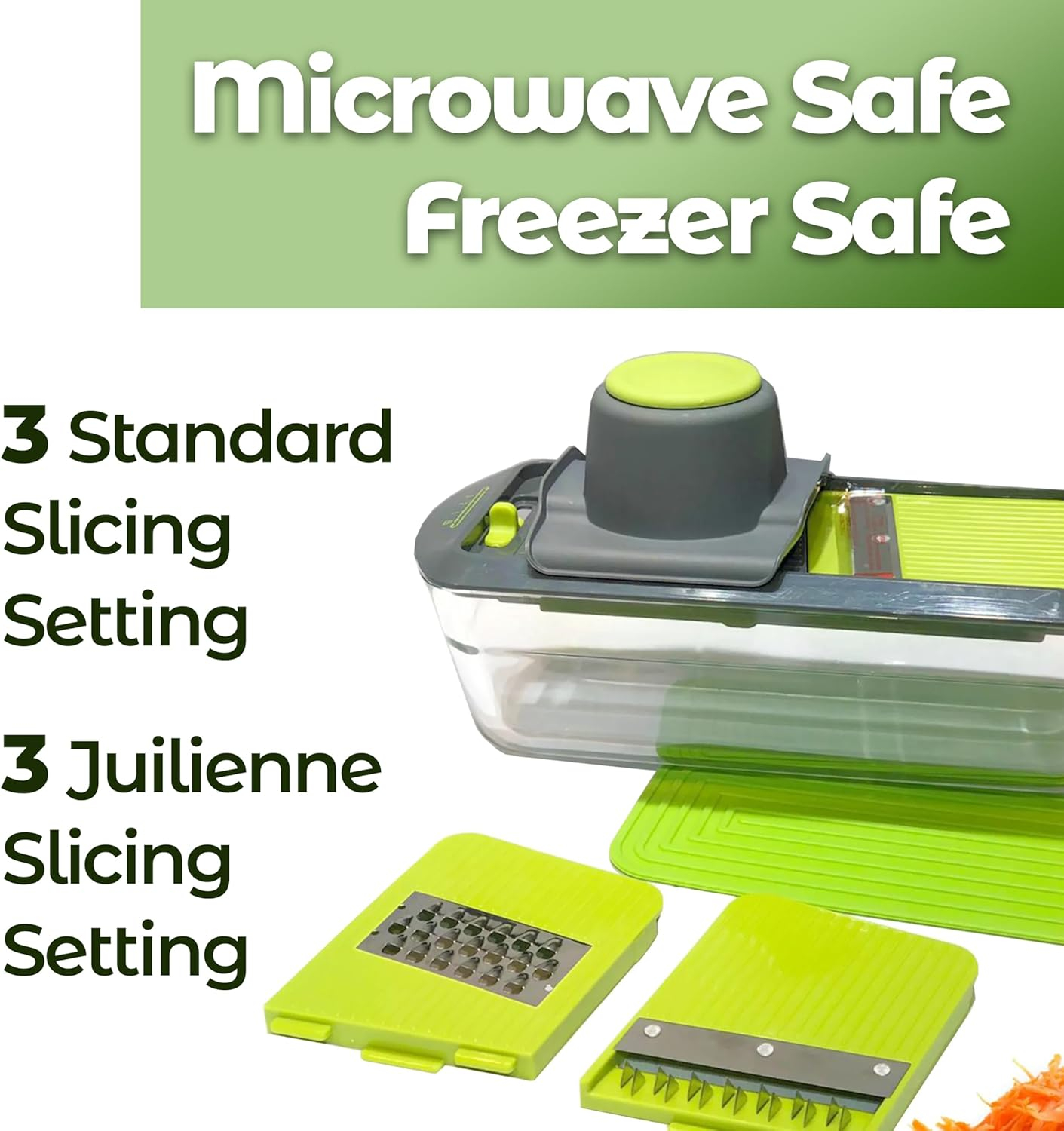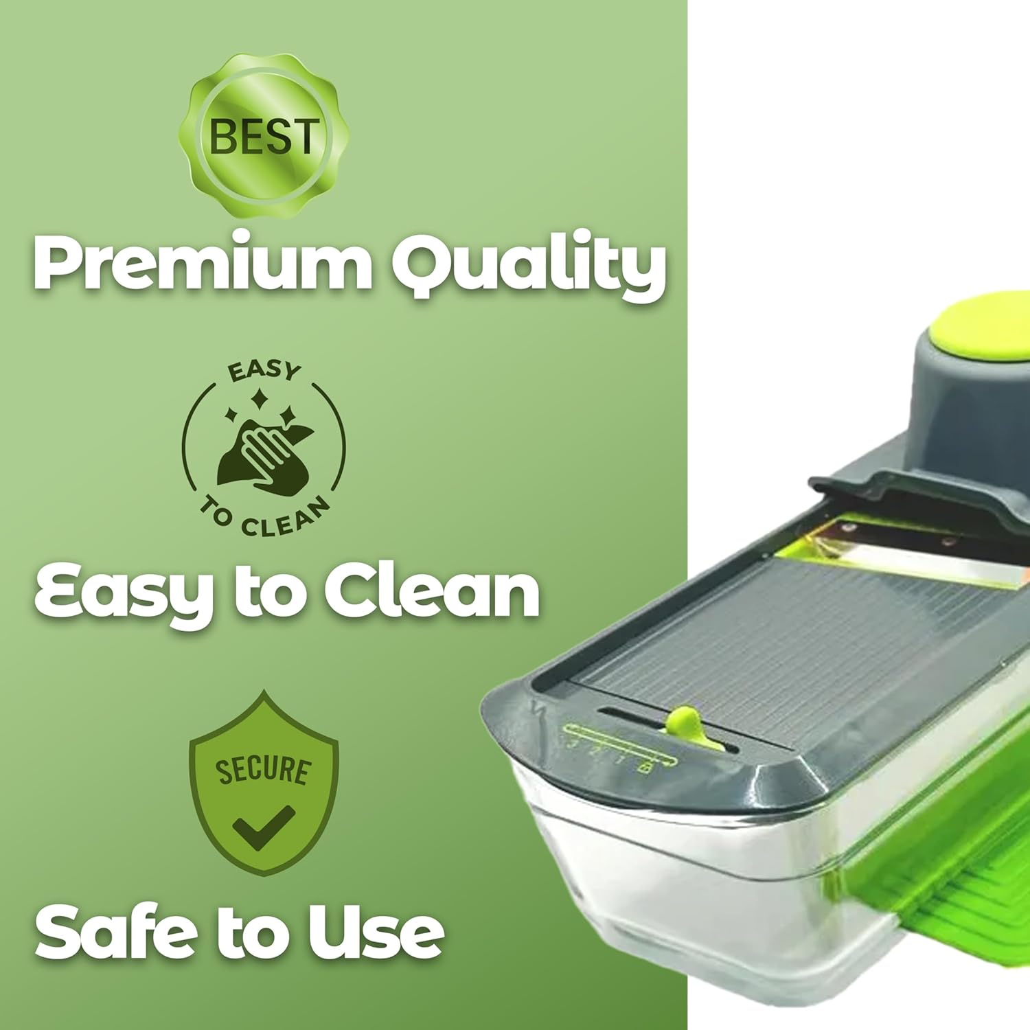 • EASY TO USE: Features an ergonomic design, non-slip grip, and a suction cup base for stability. This slicer ensures smooth and safe operation while reducing prep time. The included safety guard protects your fingers during use, making it beginner-friendly and highly practical.