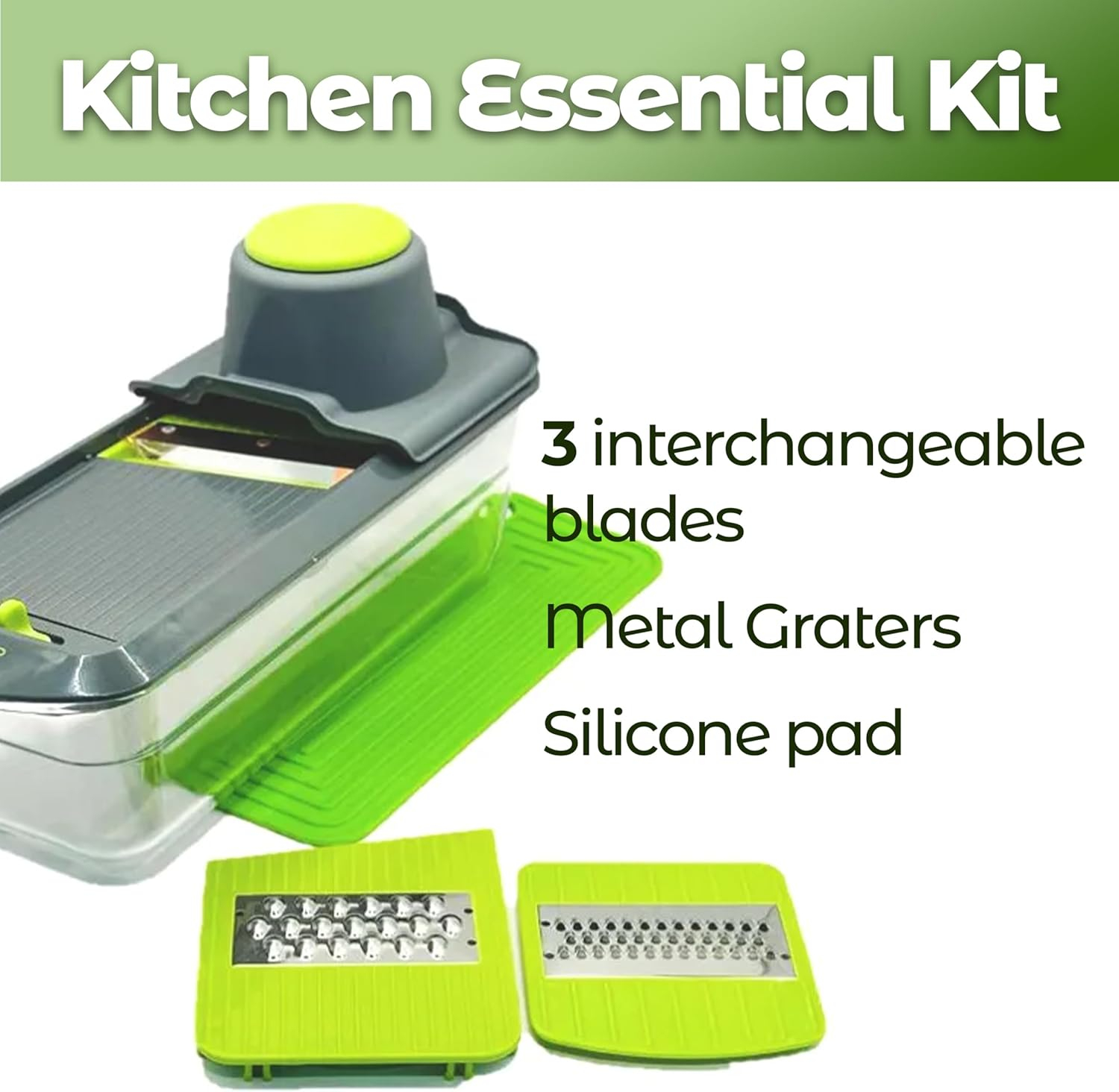 B&S Adjustable Glass Mandolin Slicer | Vegetable Chopper & Peeler with Dicer Cutter | Multifunctional Food Chopper | Spiralizer & Veggie Cutter with Container | Kitchen Gadgets & Home Essentials