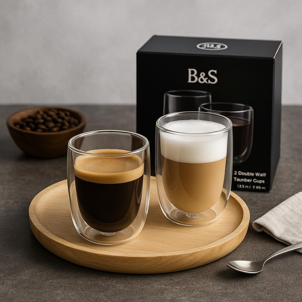 ☕ B&S Double Wall Insulated Glass Set – Elegant, Durable & Designed for Comfort