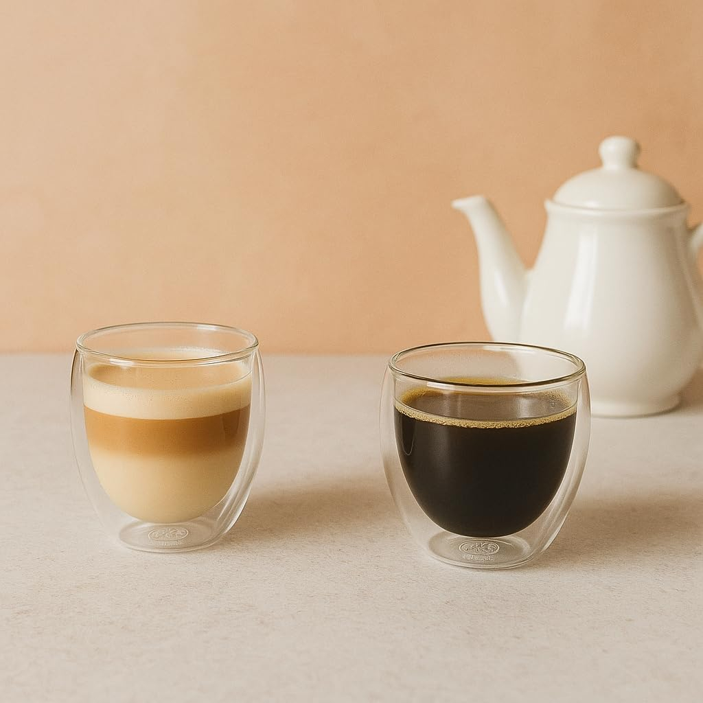 - ✅ Set of 2 Espresso Glasses: Each with 80ml capacity, ideal for espresso or ristretto