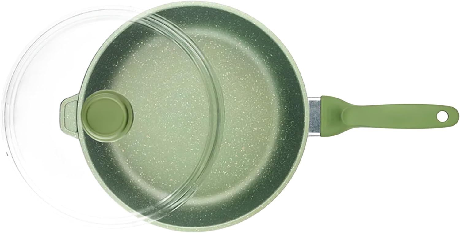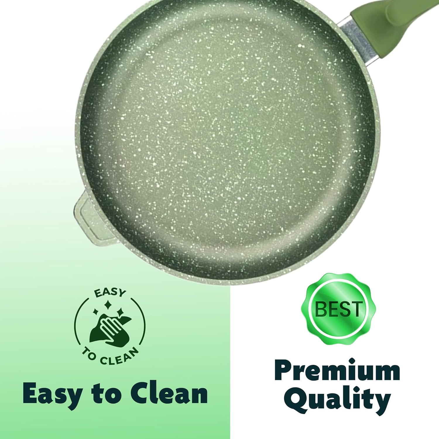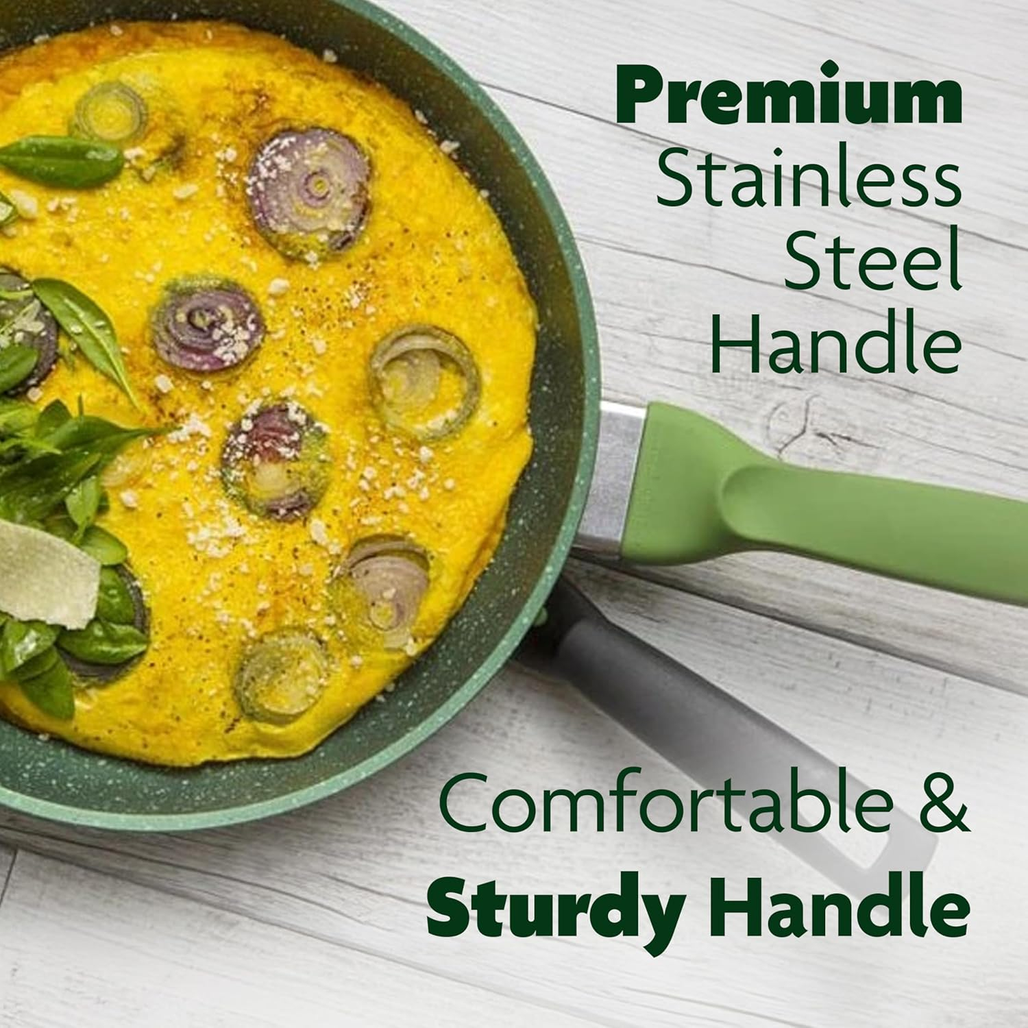 • PREMIUM NONSTICK THREE LAYER COATING: Designed with three layered green stone coating for exceptional scratch resistance and long-lasting nonstick performance, this frying pan ensures healthier, oil-free cooking and effortless food release.