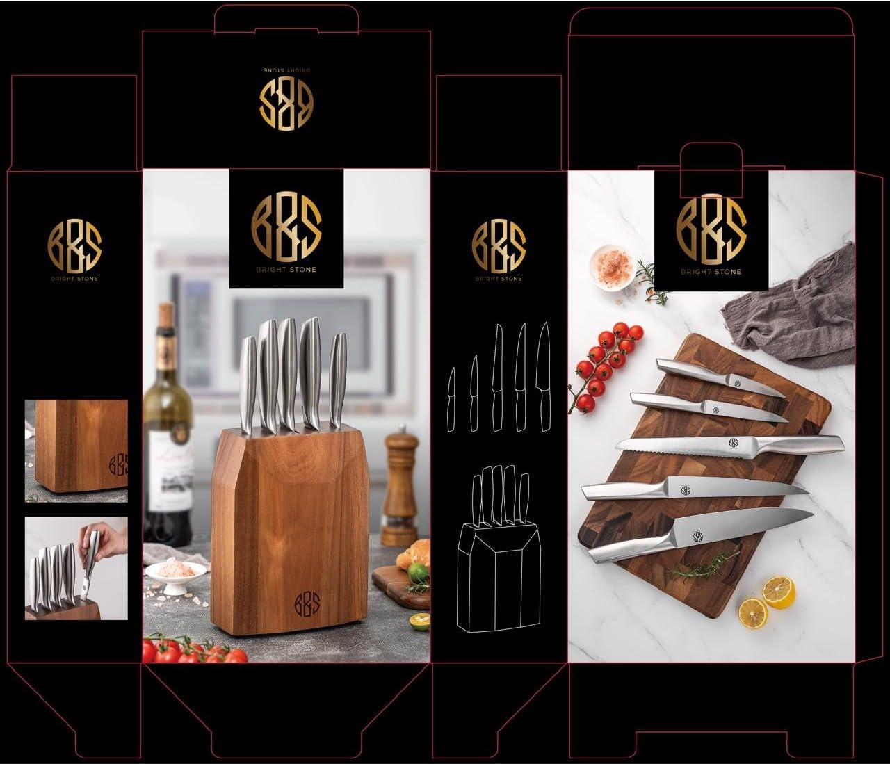 B&S knife block with 5pcs knife set block material:acacia Size:17 * 9 * 22.5cm Knife material: 3cr14, hollow handle,original color