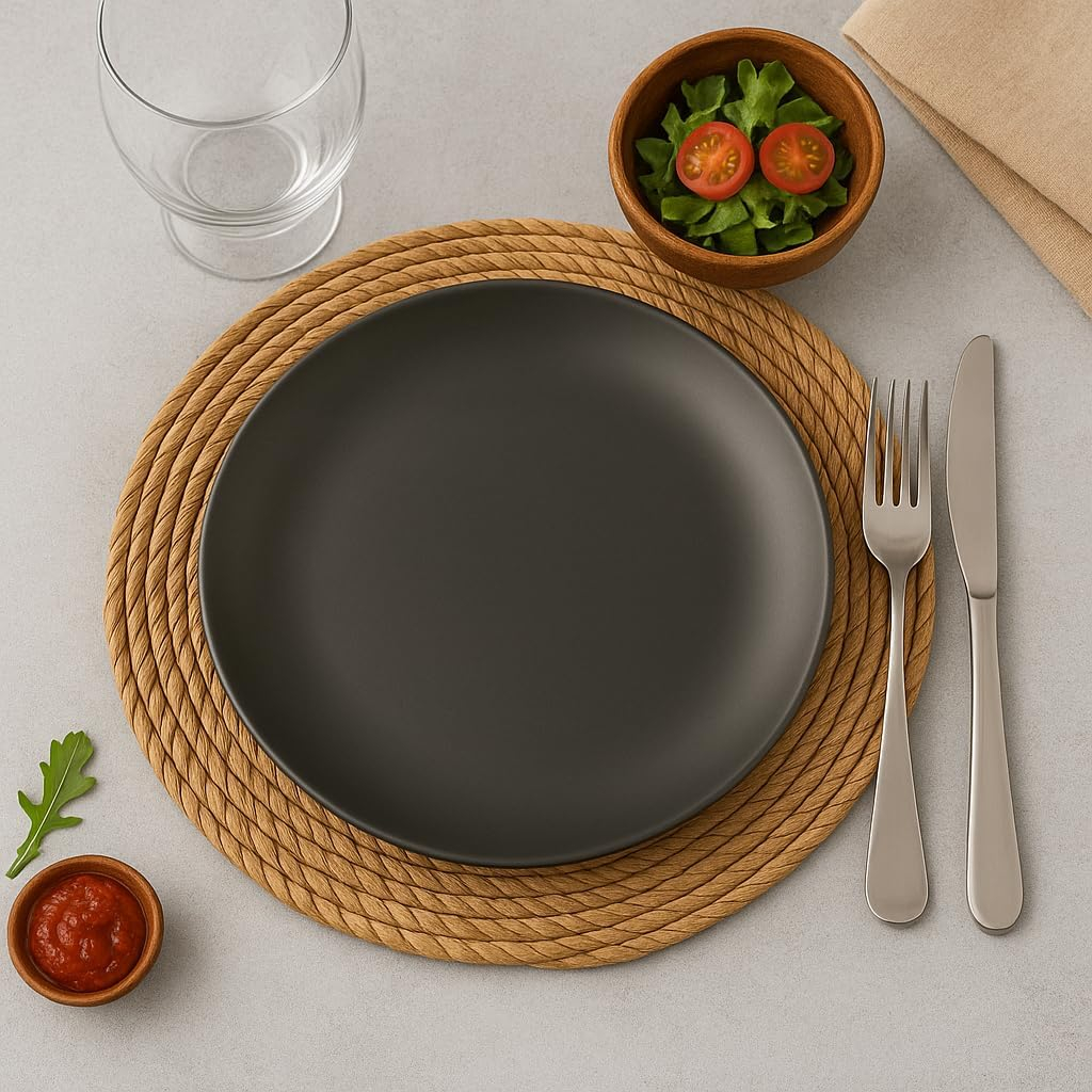 - ✅ Set includes 4 grey matte 8-inch coupe plates – ideal for salads, desserts, bread, appetizers & side servings