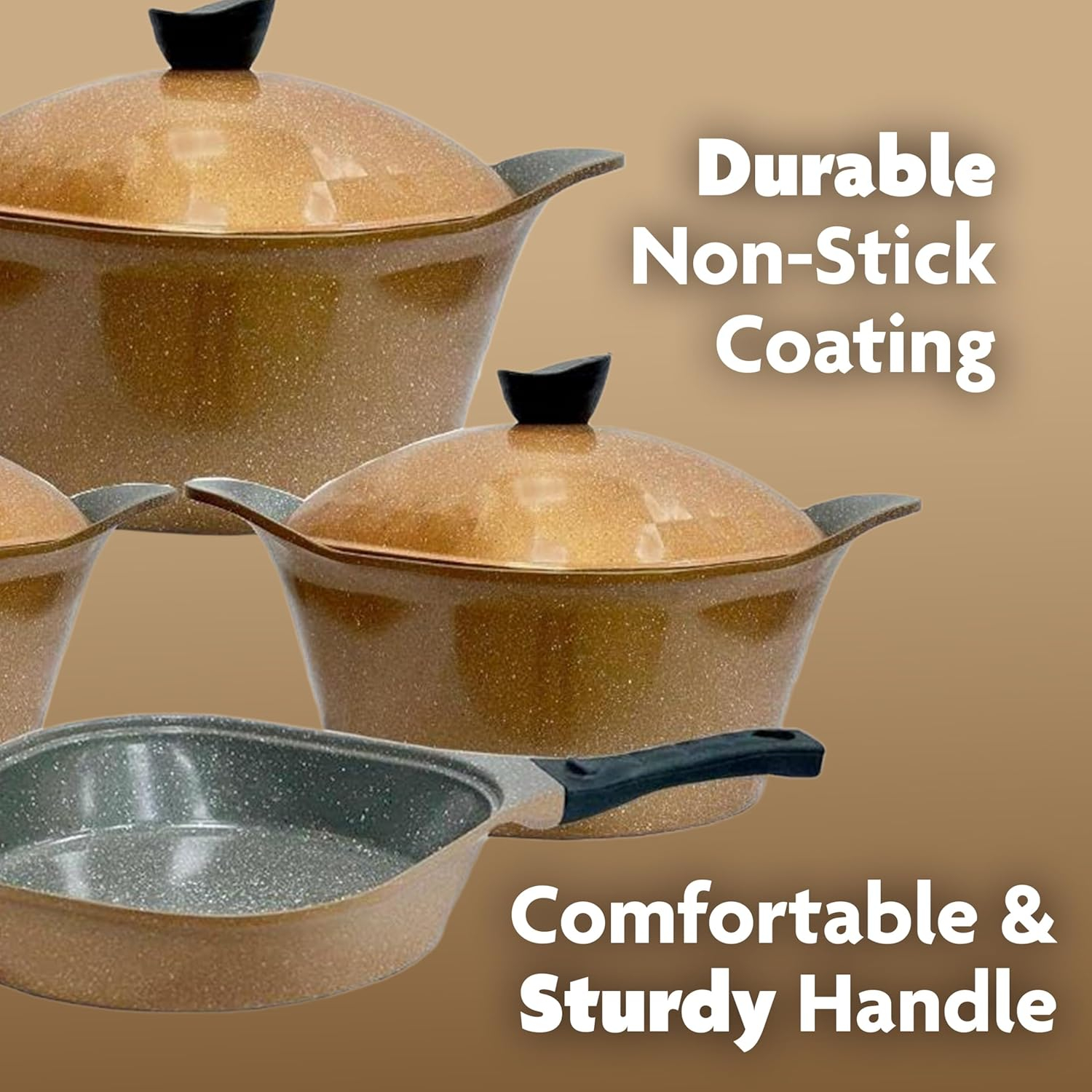 With its 8-layer marble coating, this set offers effortless food release and is completely dishwasher safe. Spend less time cleaning and more time enjoying your meals.