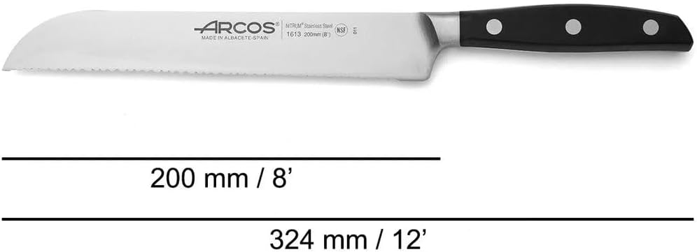 B&S NORDIKA Chef’s Knife 210mm – Professional Stainless Steel Kitchen Knife with Triple-Riveted Wooden Handle – Premium Cooking Knife with Case (BREAD KNIFE 200 MM)