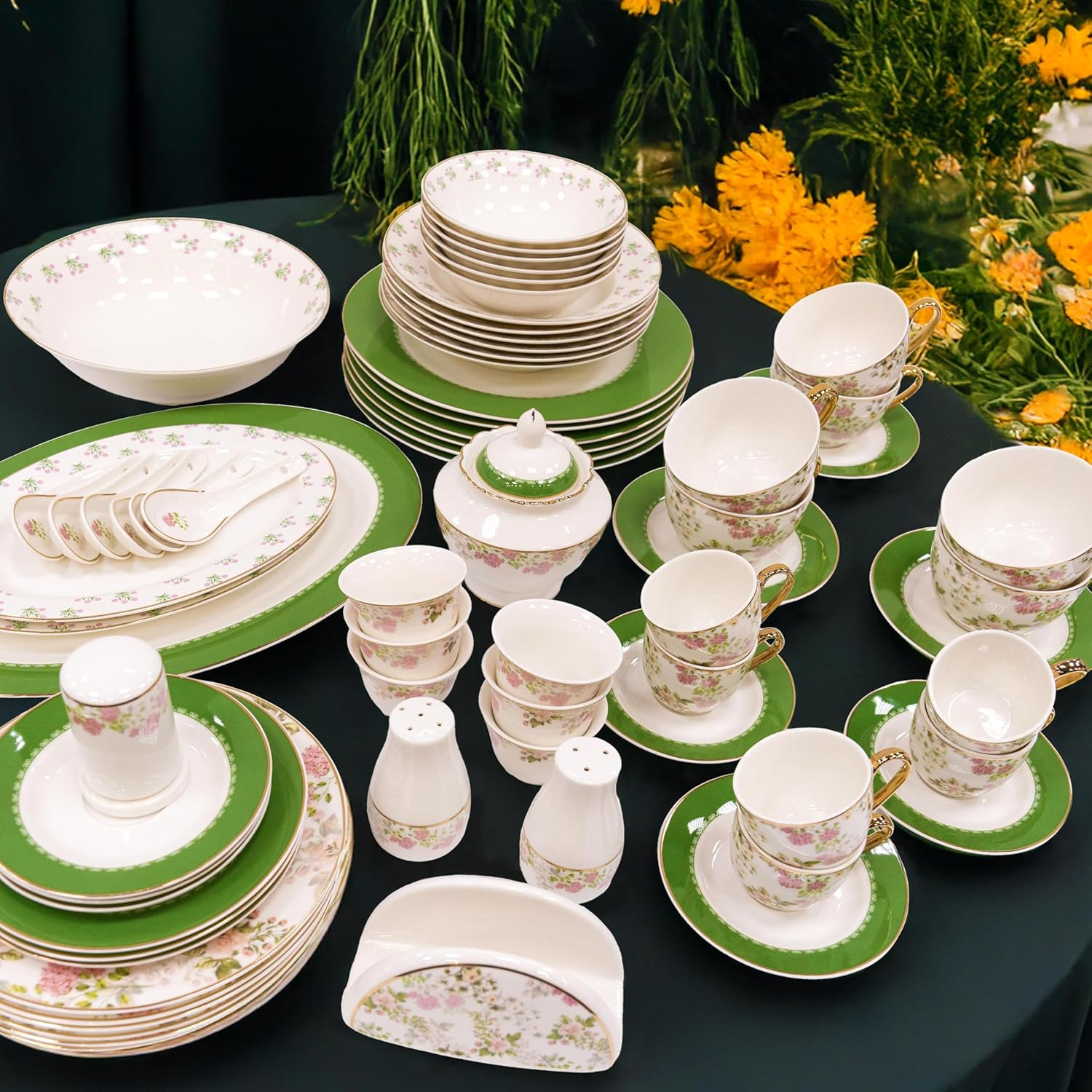 • COMPLETE DINNERWARE COLLECTION: Includes 71 pieces: dinner plates, dessert plates, soup plates, salad bowls, tea and coffee sets, plus additional accessories. Designed to cater to all your dining needs with elegance and practicality, this set is perfect for entertaining guests.