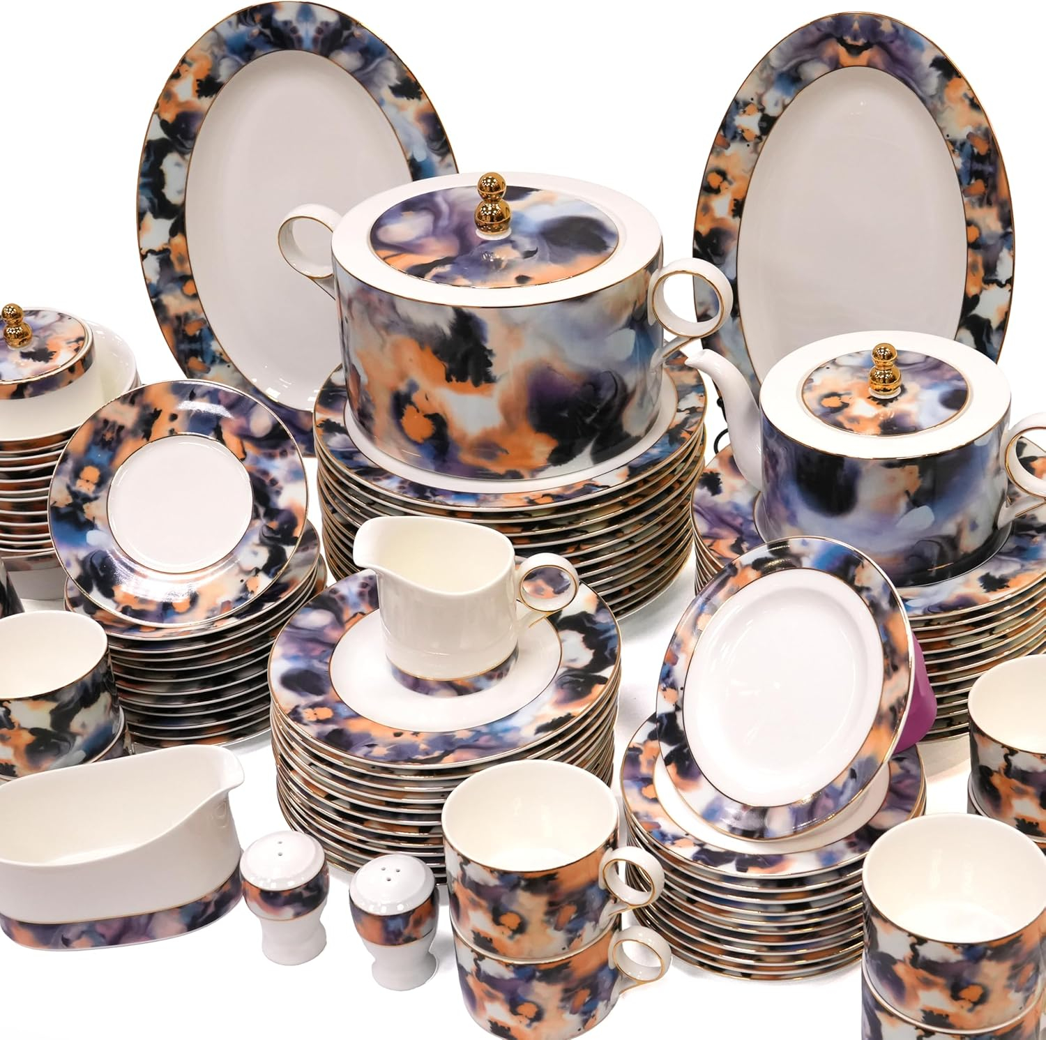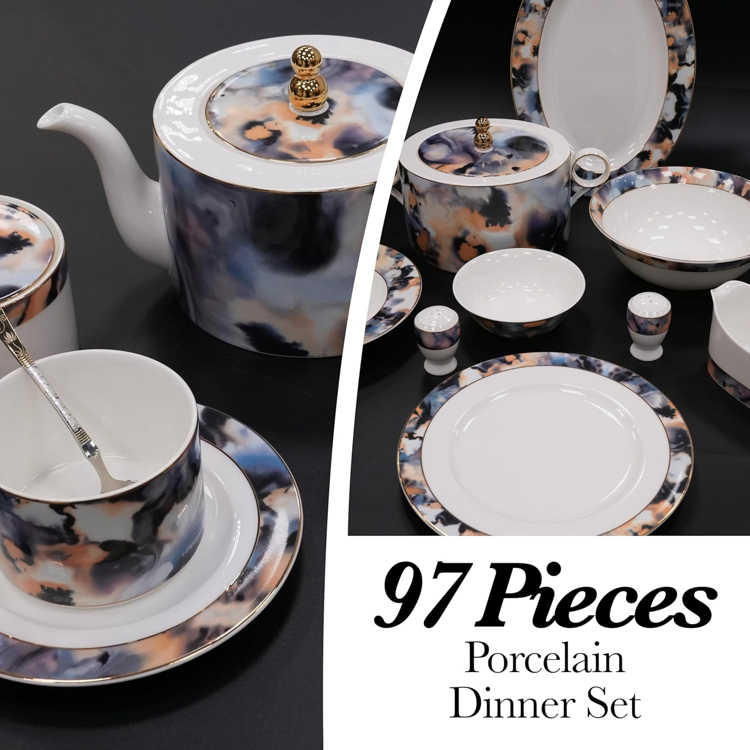 Elevate your dining experience with the B&S Porcelain Round Dinnerware Set, 97 Pcs, a premium collection of ceramic tableware designed to impress. Featuring a floral vintage coffee set aesthetic and high-gloss finish, this dinner set seamlessly combines functionality with elegance.