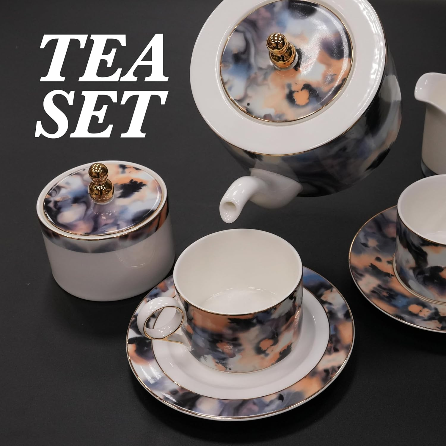 Inspired by timeless flower painting patterns, this porcelain tea set exudes a vintage charm perfect for both everyday use and special occasions. Transform your table into a beautiful work of art with this unique dinnerware set.