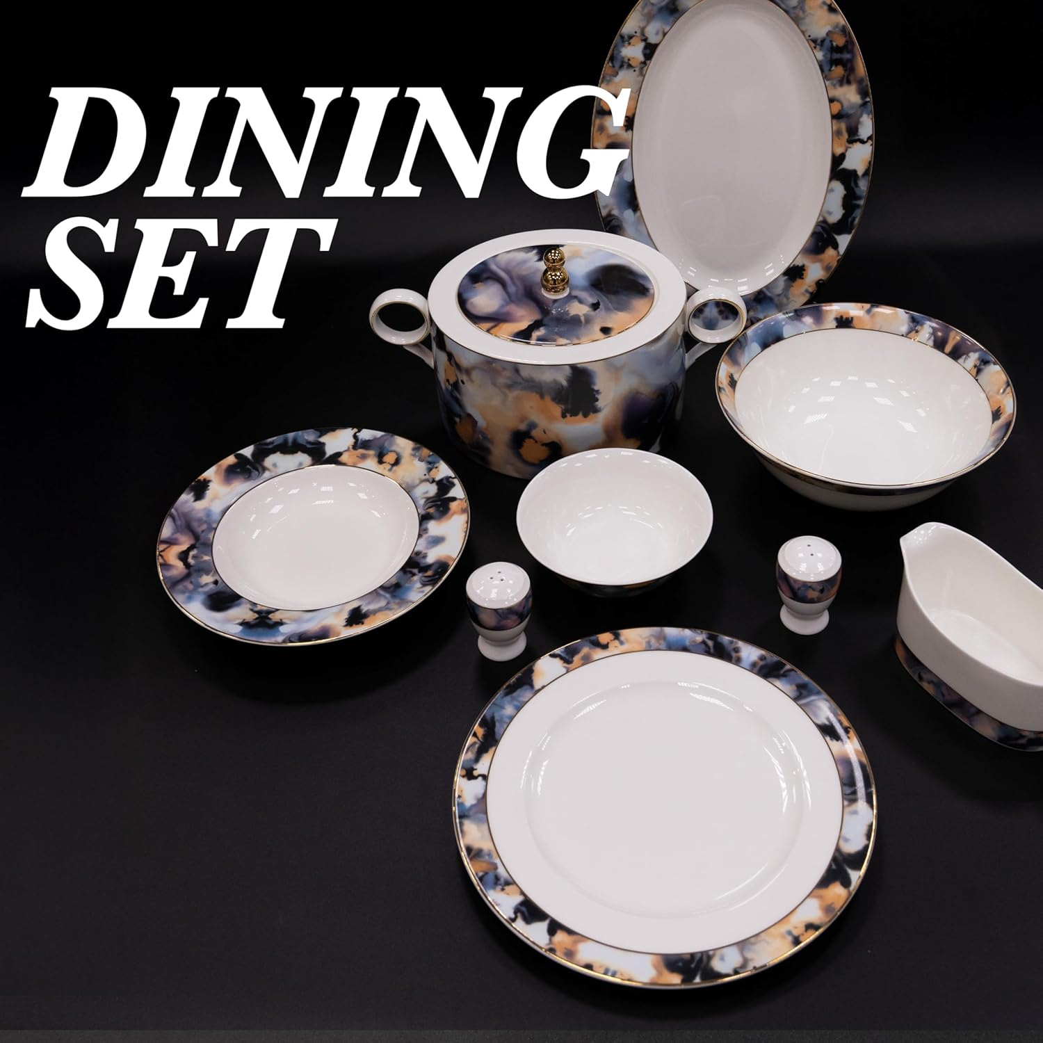 This Porcelain Dinnerware Plates and Bowls Set is your all-in-one solution for a sophisticated dining setup. From tea pots and saucers to salad bowls and soup tureens, every piece is designed for versatility and style.