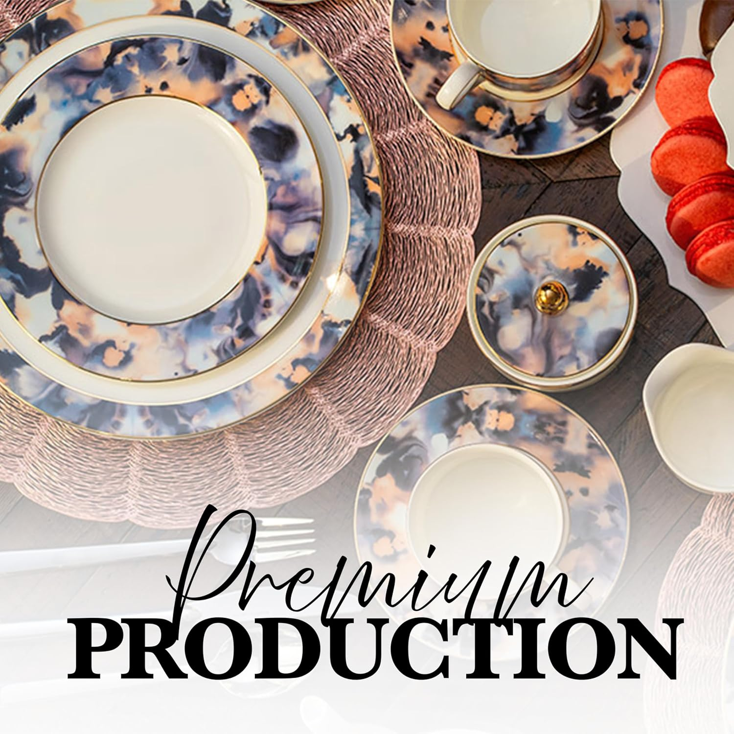 Made with premium ceramic tableware, this dinner set ensures longevity while being microwave and dishwasher safe. The high-gloss finish enhances its durability, making it resistant to daily wear and tear.