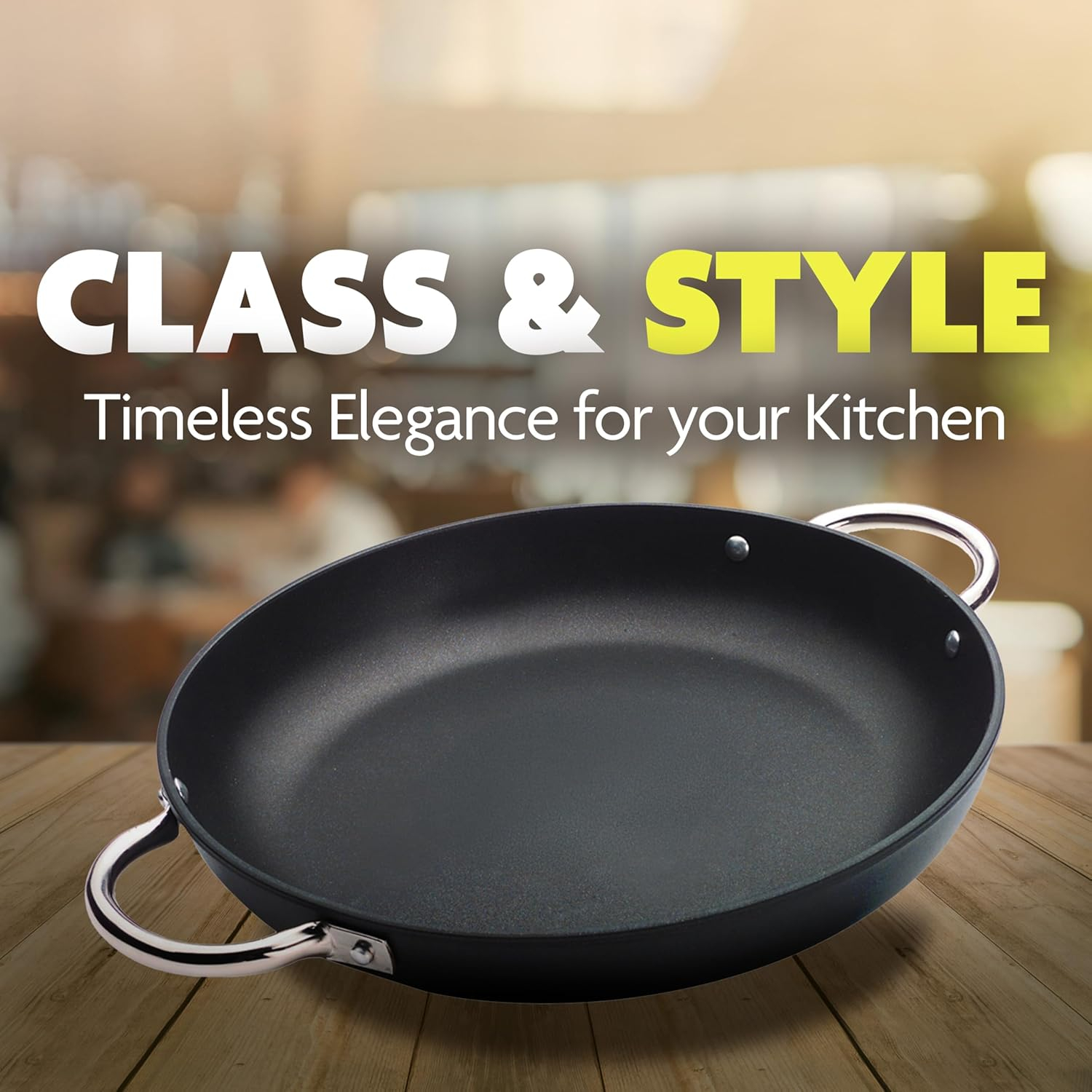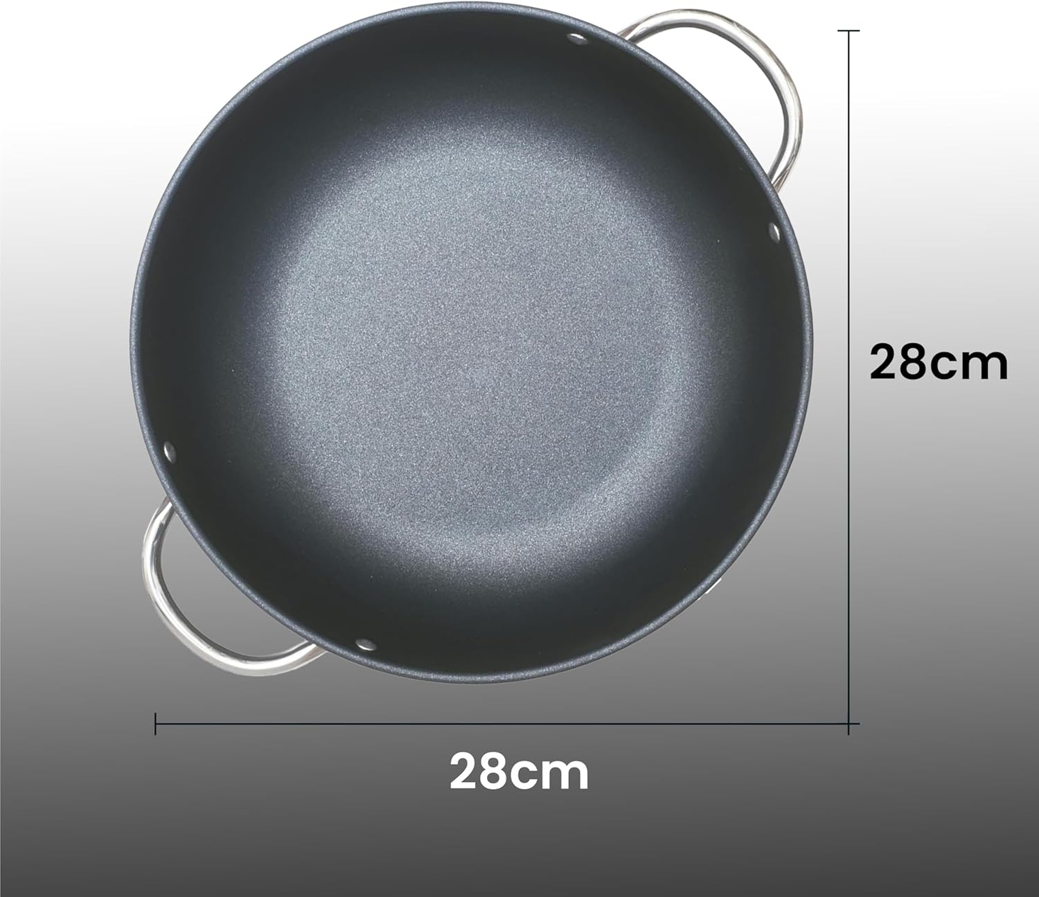 • MULTIPLE SIZES & CAPACITIES: Available in 28cm, 32cm, and 36cm sizes with capacities of 3.8L, 2.8L, and 1.8L, this pan is perfect for every cooking need. Its sleek black finish and modern design make it an elegant addition to your cookware collection.