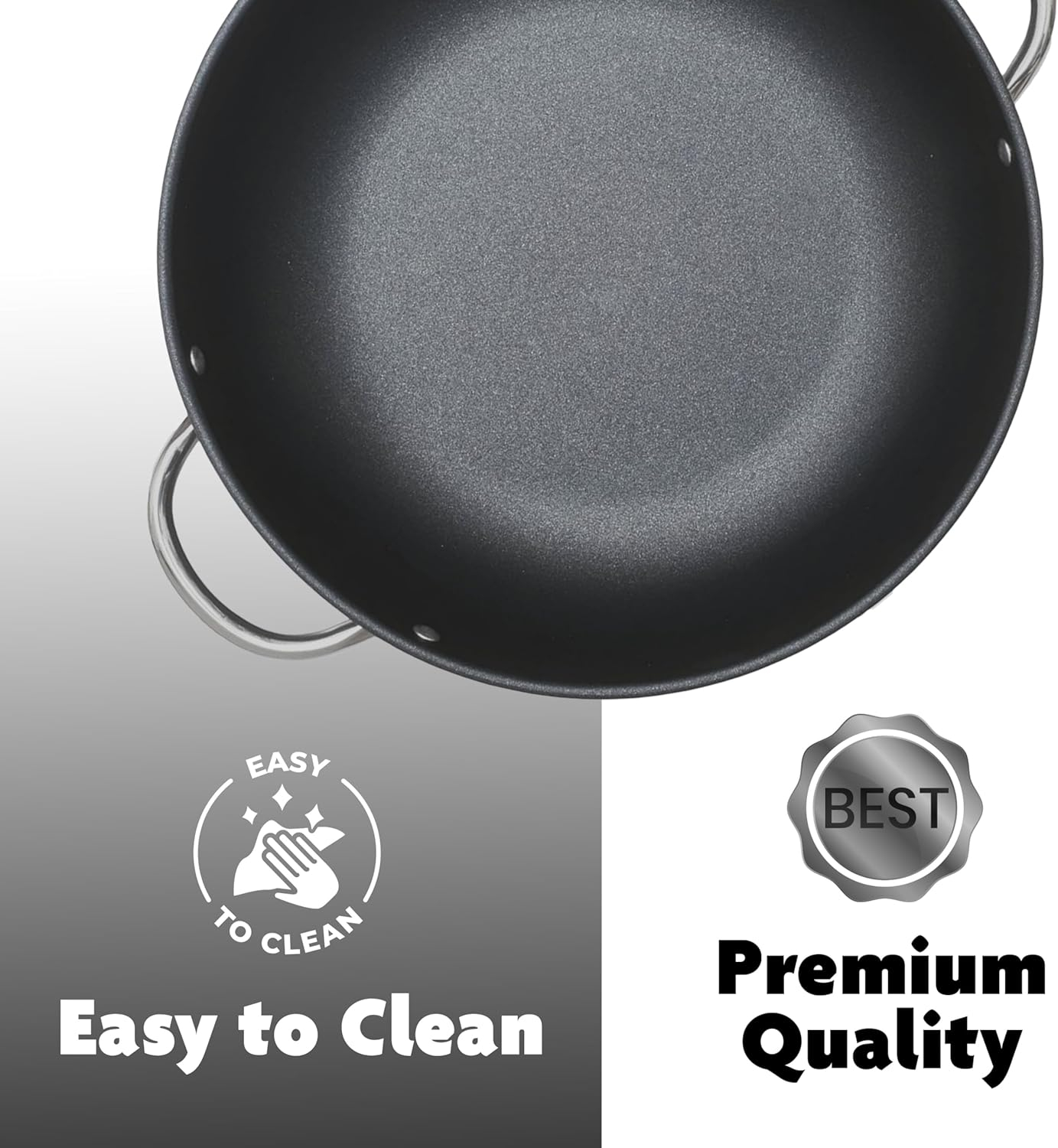 The combination of heat-insulating stainless steel handles and a die-cast aluminum body offers a balance of safety, functionality, and premium design. Handles stay cool during cooking, allowing you to move the pan effortlessly.
