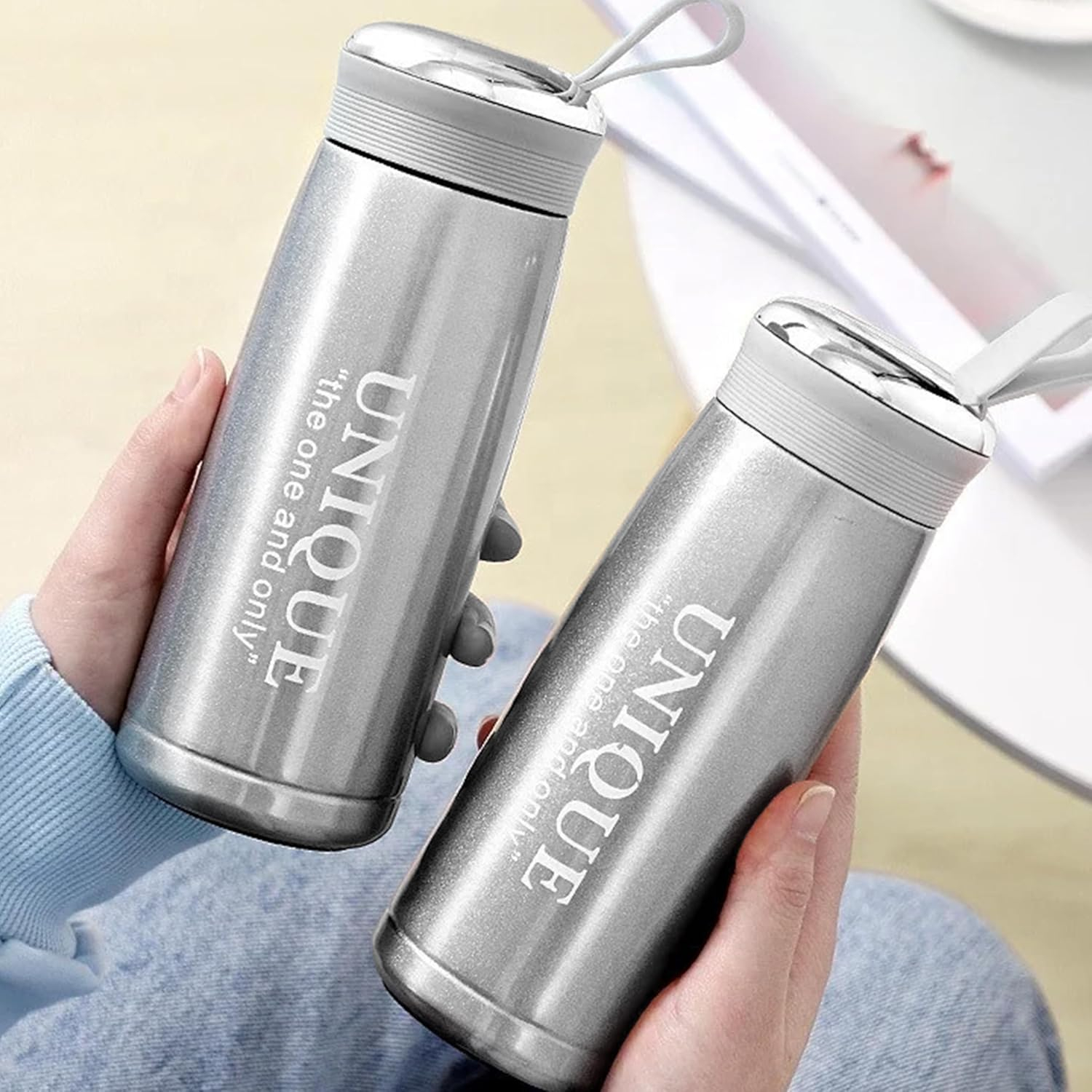This flask bottle features a 360° anti-leakage lid, ensuring no accidental spills. It comes with a strap, adding a versatile touch for camping, traveling, or everyday use.
