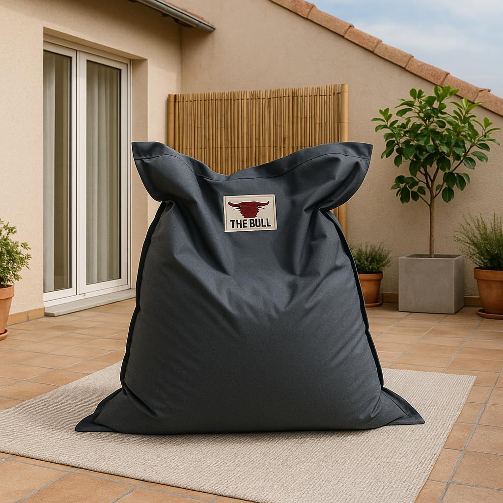 B&S The Bull Bean Bag – Anthracite Color, XXL Size H190xW130 cm, Premium EPS Filling, UV-Resistant Polyester, Double Seamed, Childproof Velcro Closure, Indoor/Outdoor Lounger Chair