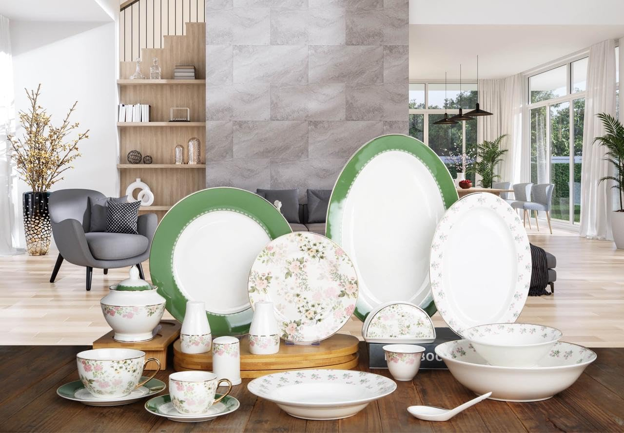 • Coordinated Style: With its harmonious colour scheme and cohesive design, this dinner set creates a visually appealing and cohesive tablescape.