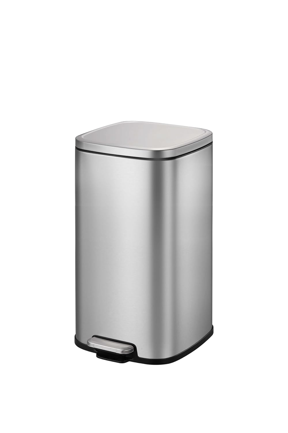 EK9384MT -20L “EKO” BRAND Square Step Bin, Fingeprint-resistant Brushed Stainless Steel, Soft close Lid, Black PP Liner