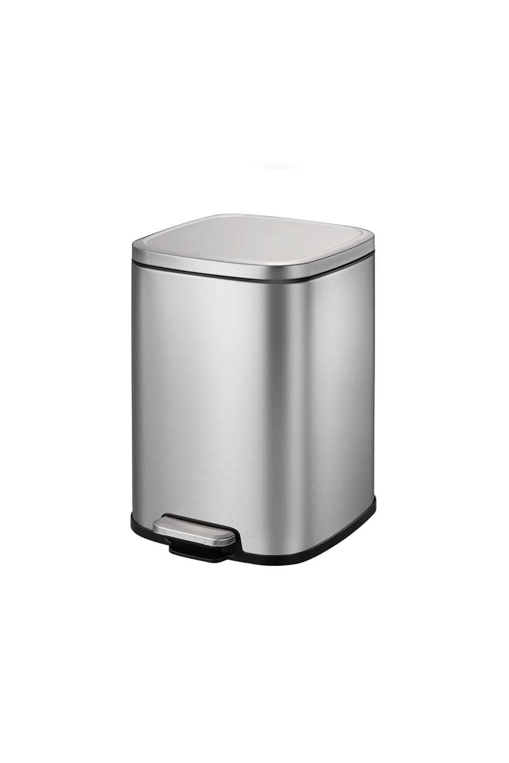 EK9384MT-6L “EKO” BRAND 6LSquare Step Bin, Fingeprint-resistant Brushed Stainless Steel, Soft close Lid, Black PP Liner