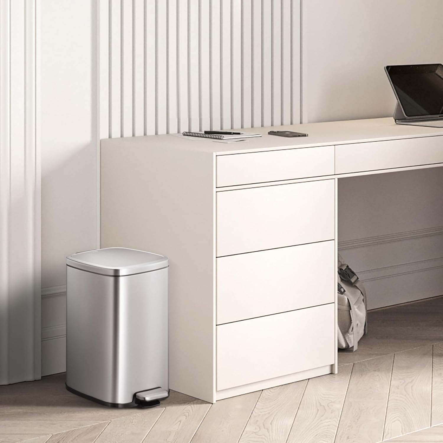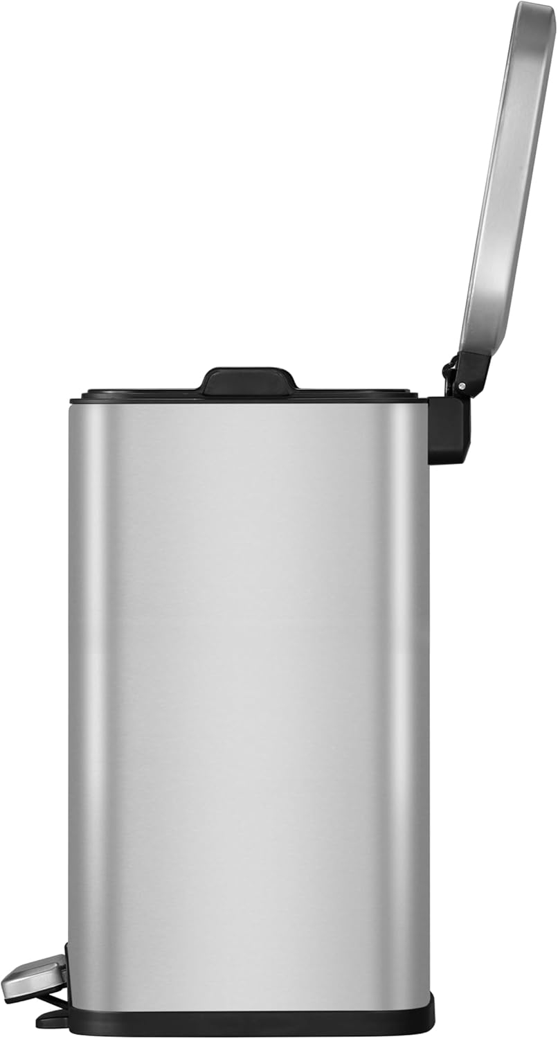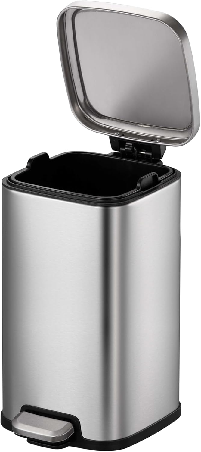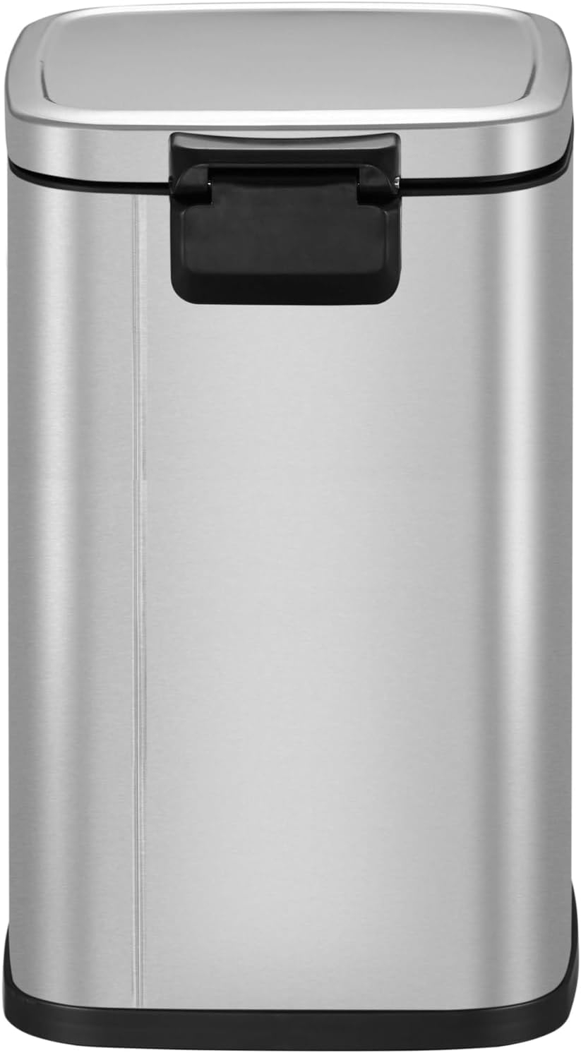 Like: choice of size ( including matching liner bags ), smooth pedal operation, appearance and smear-resistant finish, removable section containing the liner, lightweight but sturdy, excellent price.
