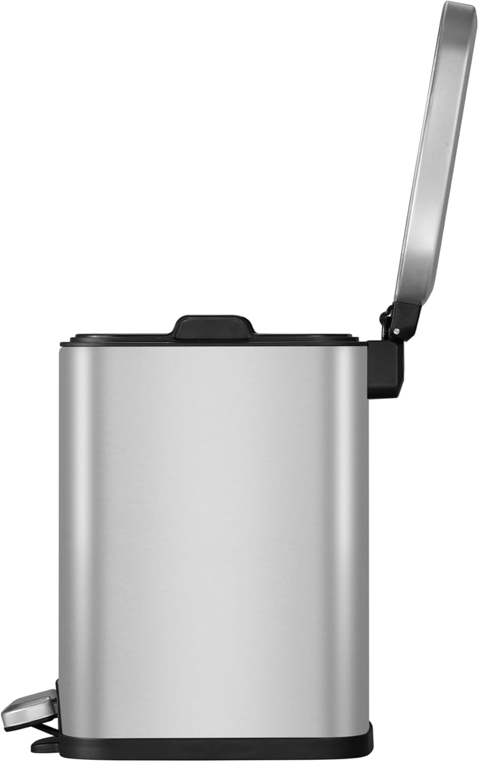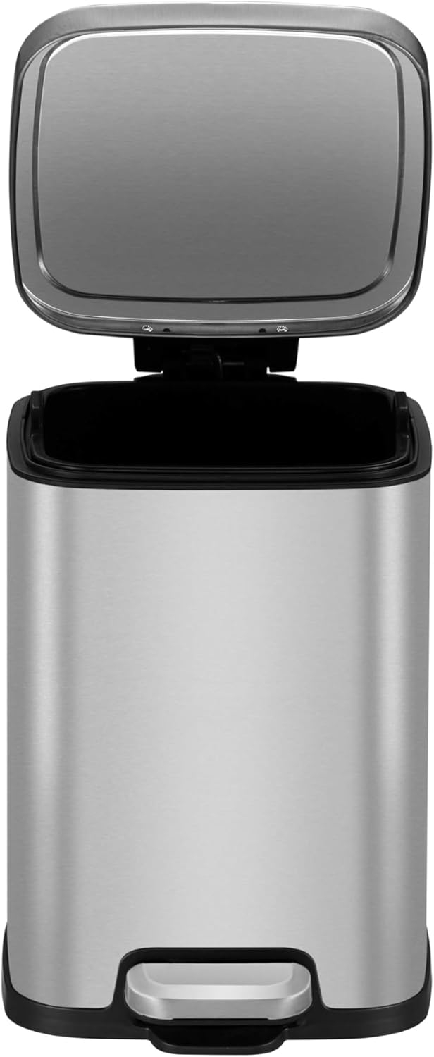 • Durable Pedal & Stay-Open Feature: Built with a sturdy stainless steel foot pedal for long-lasting hands-free use, plus a stay-open mechanism for easy liner changes.