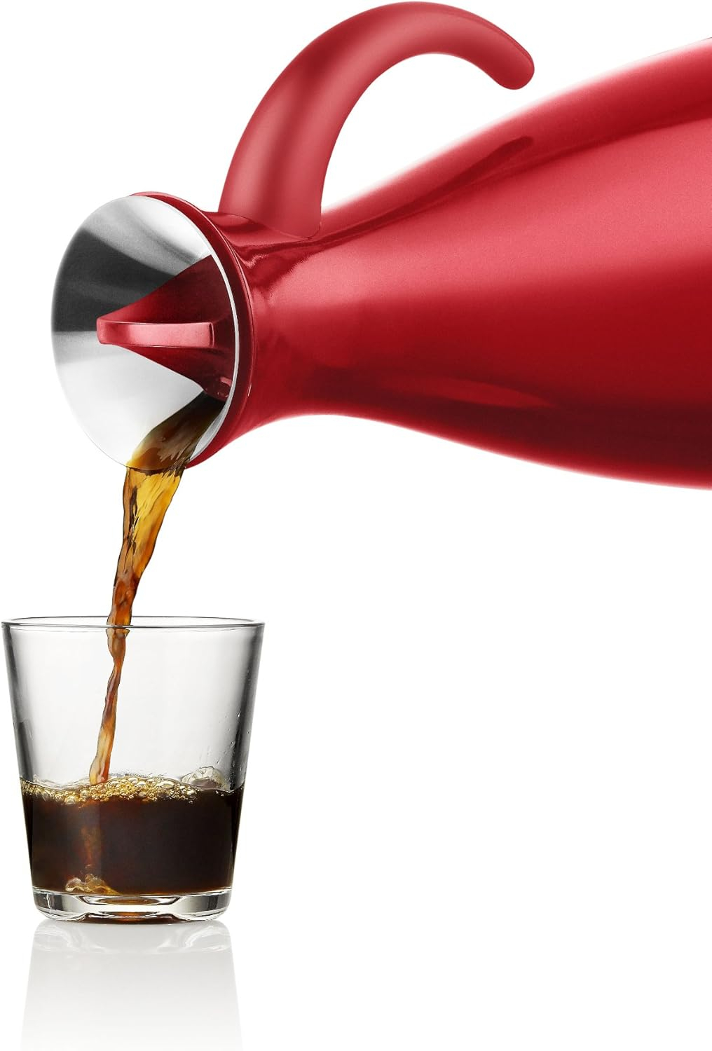 Auf der suche nach einer neuen Isolierkanne bin ich auf die EVO Solo gestossen.Pflegeleicht, Spülmaschinengeeignet und hcohwertig sollte es sein.Ein solzer Preis von 50,00 Euro mußte erstmal gerechfertigt werden.Als die Kanne war hat Sie aber sofort überzeugt. Die Verpackung, schön und sicher,die Kanne ist zwar aus Kunstiff aber sehr hochwertig gemacht, das Design wirktfast wie eine Vase, man muss sich definitiv nicht schömen das Ding auf demTisch zu haben. Getränke bleiben fast 20 Stunden sehr warm (kalt habe ich nich nichtprobiert). Edelstahl sehr hochwertig. Spülmaschinentest gut überstanden.Alles in allem für mich auch hier 5*