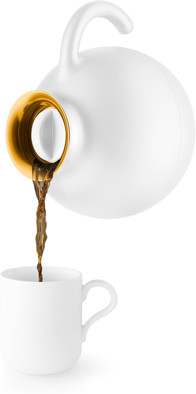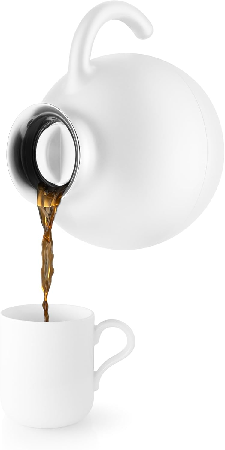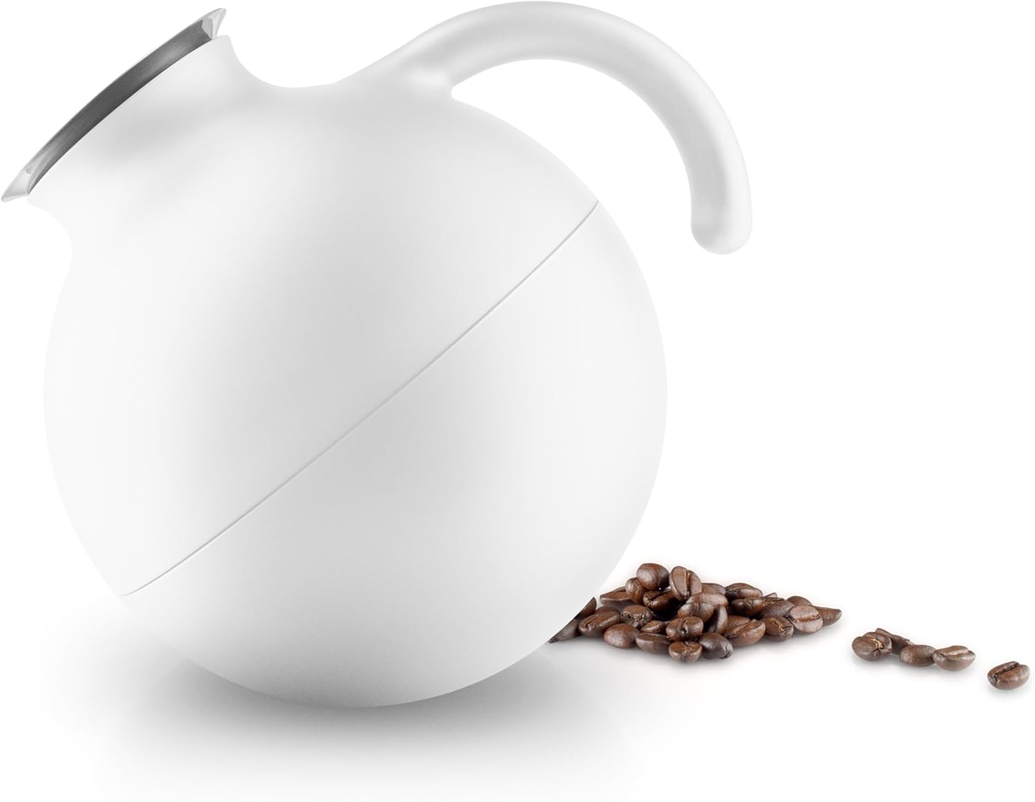 Vacuum Jug shaped like a globe perfectly balanced. Capacity 1 liter drip free. Has 2 collar colours so interchangeable to suit your style. Made of Plastic, St Steel, glass insert.