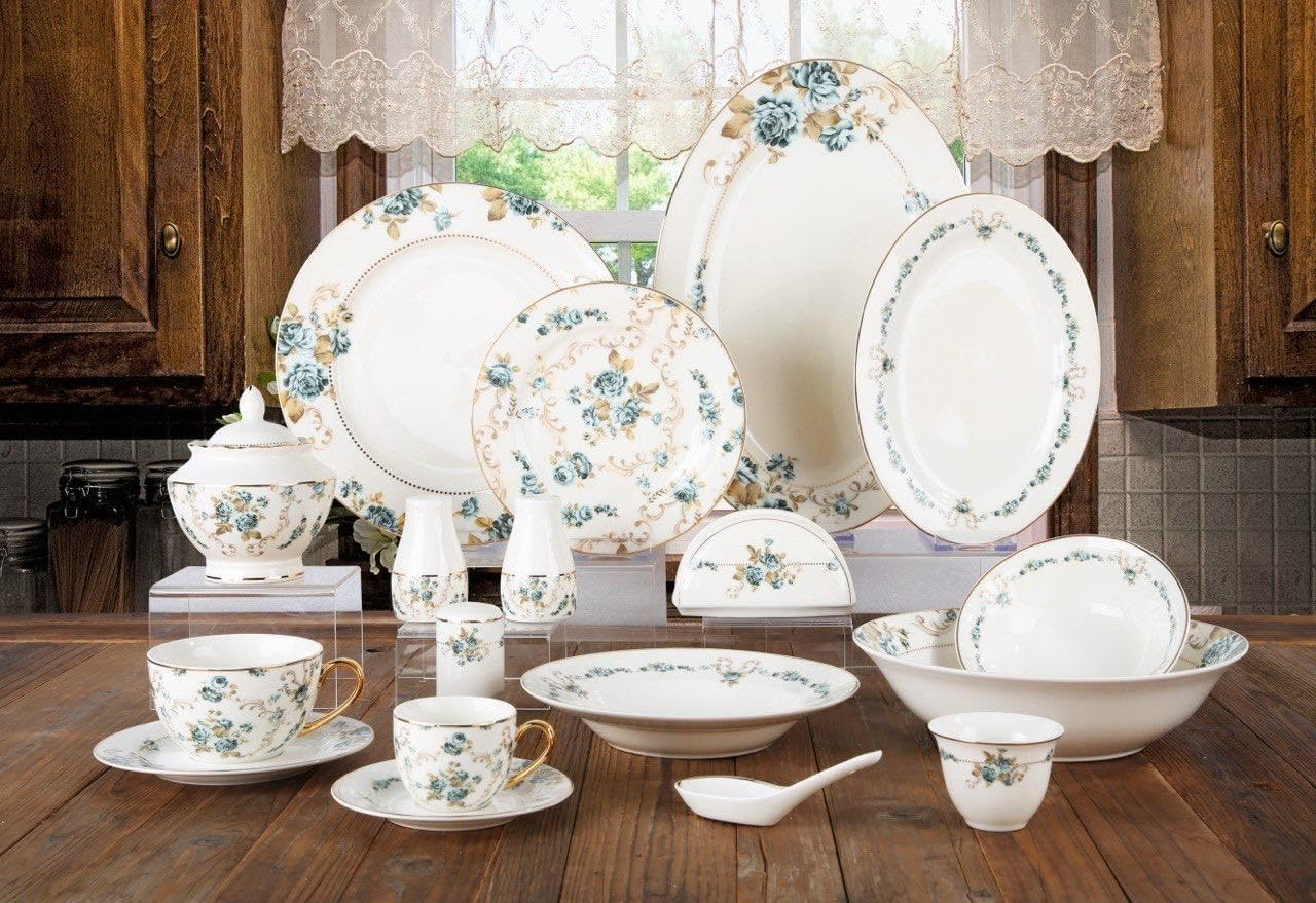 Floral Porcelain Dinnerware Set, 71pcs NBC ROUND, DS-23A248, White and Blue