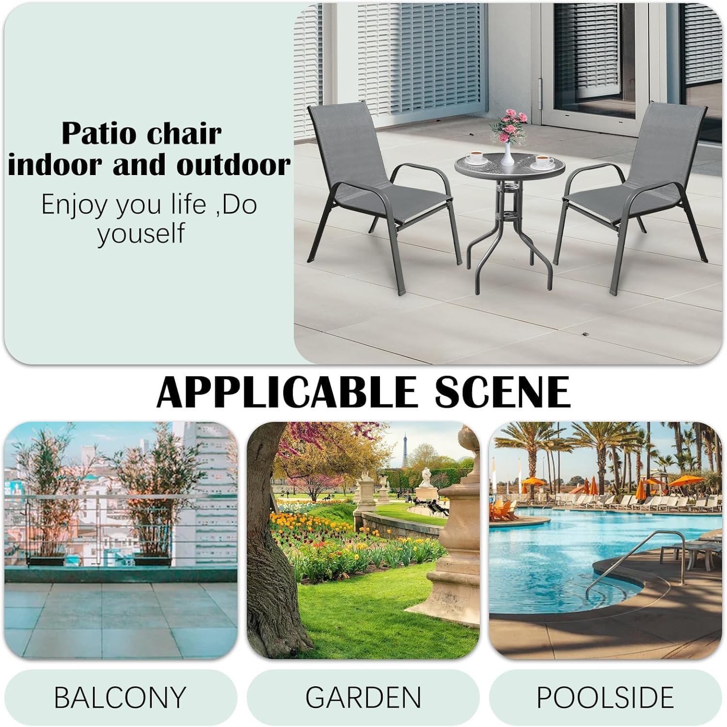 • 🪑 Comfortable and Breathable Mesh Chairs: Featuring two ergonomically designed chairs made with high-quality, breathable mesh fabric, offering superior ventilation and comfort for long hours of outdoor relaxation — perfect for garden brunches, balcony evenings, and poolside lounging.