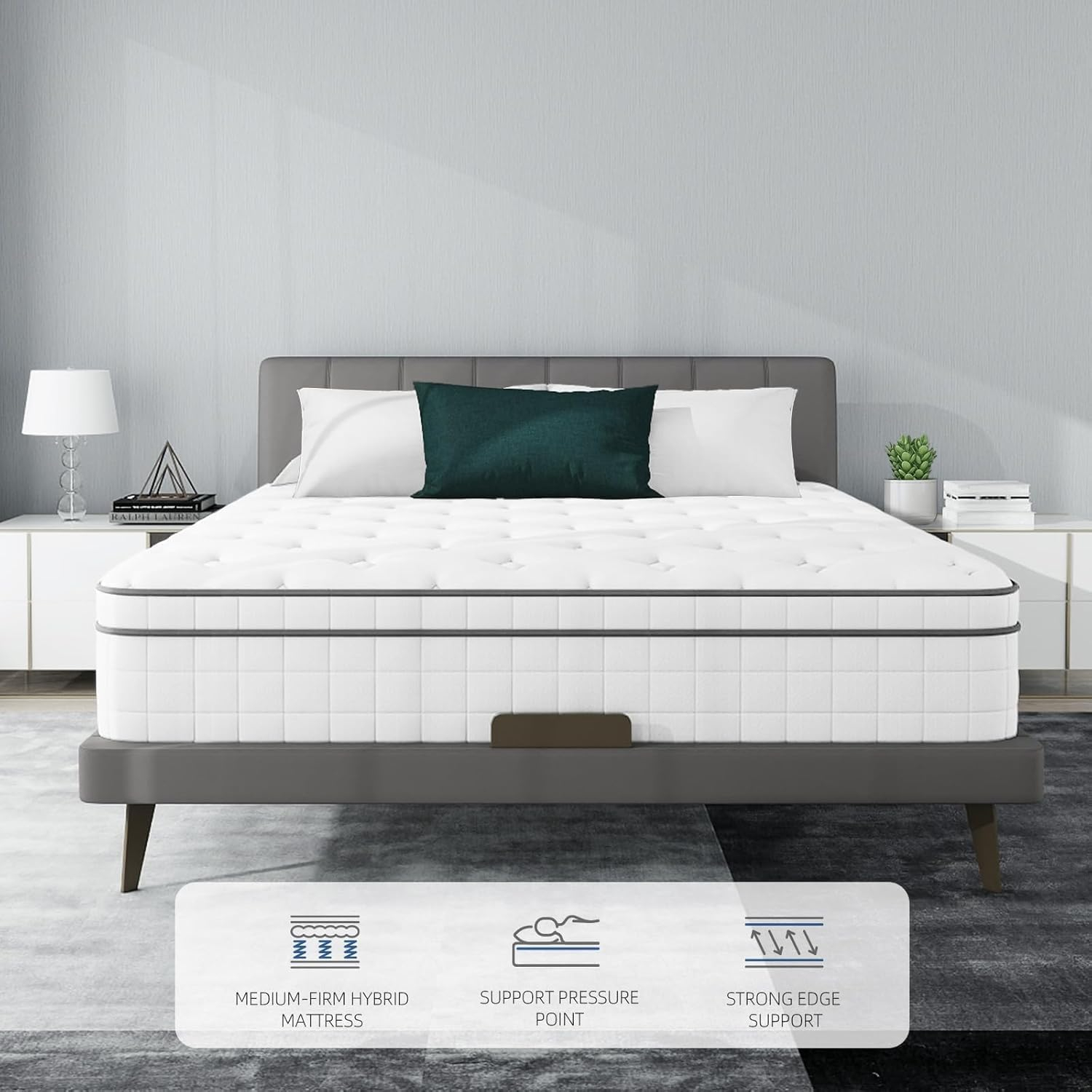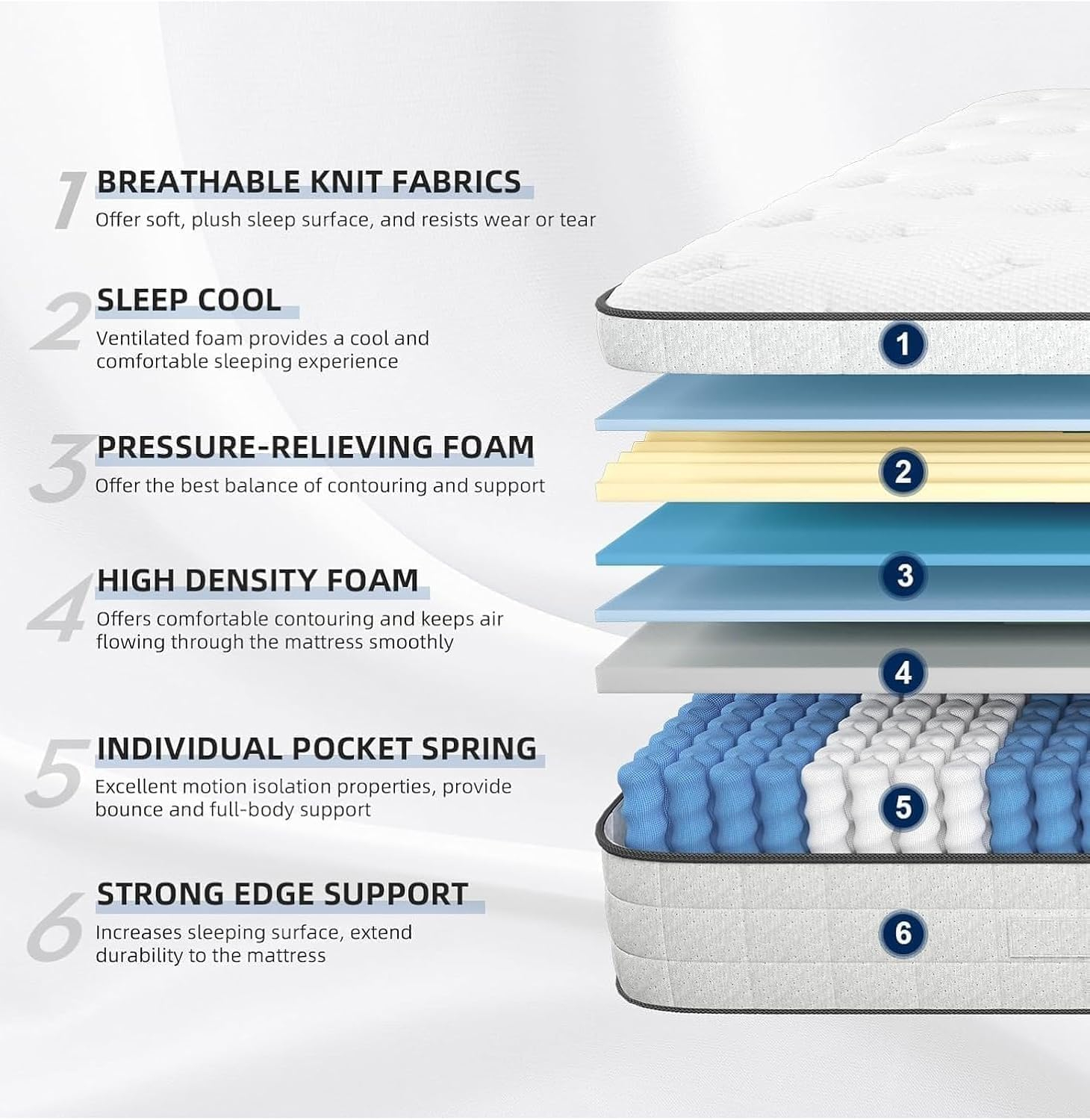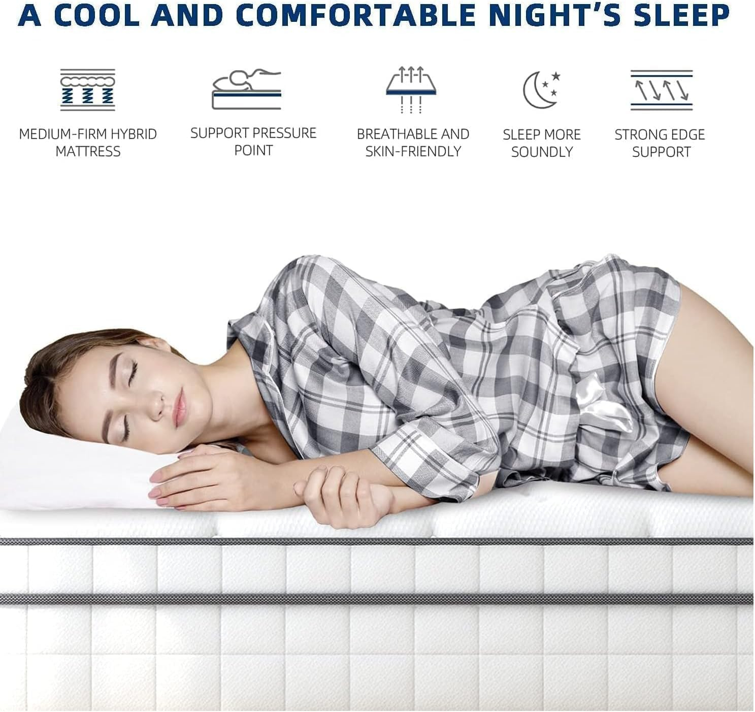 • HYBRID DESIGN: Features a combination of pocket springs and memory foam gel layers for optimal comfort and support, creating a perfect medium-firm sleep surface