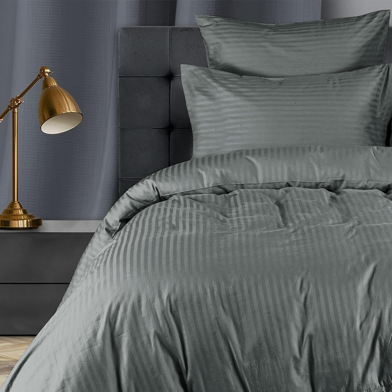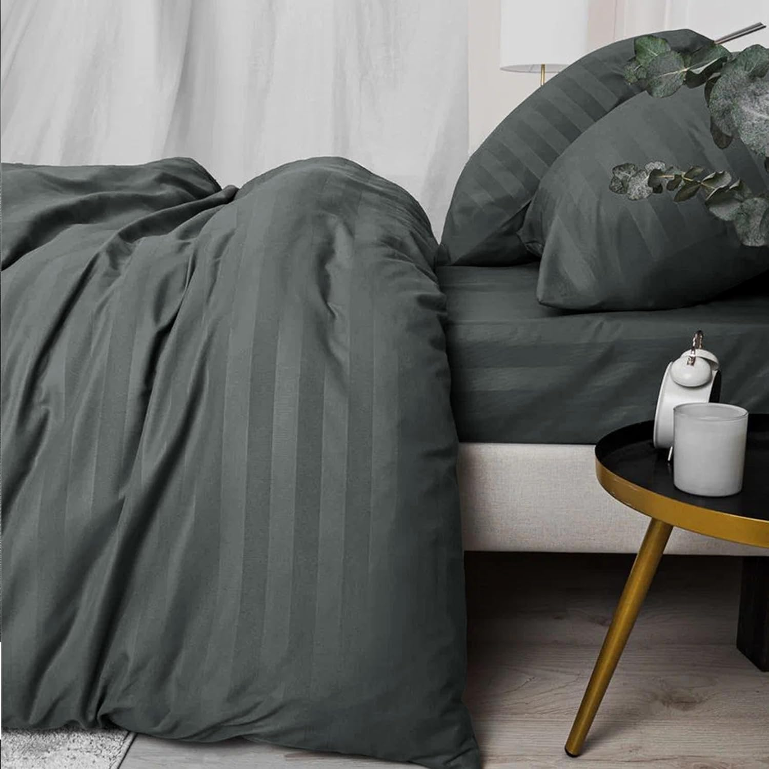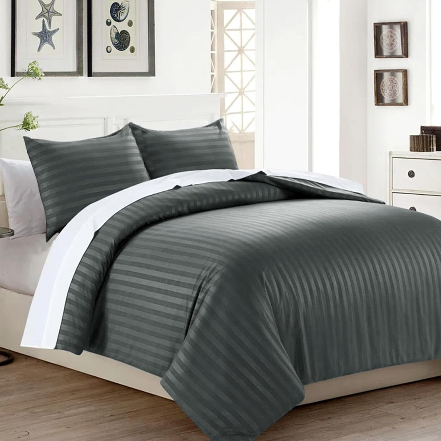 Home Mart Outlet Duvet Cover Sets Double Premium Hotel Quality Brushed Microfiber Satin Stripe Quilt Cover Set with Pillowcases Hypoallergenic Ultra Soft Microfiber (Charcoal, Queen – 220 x 240 cm)